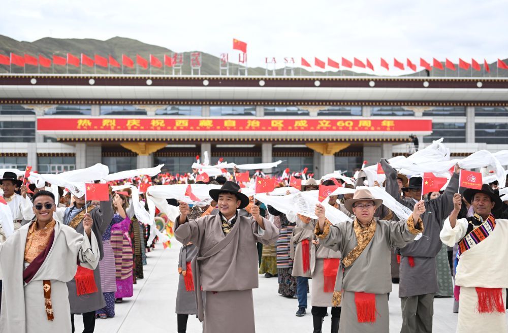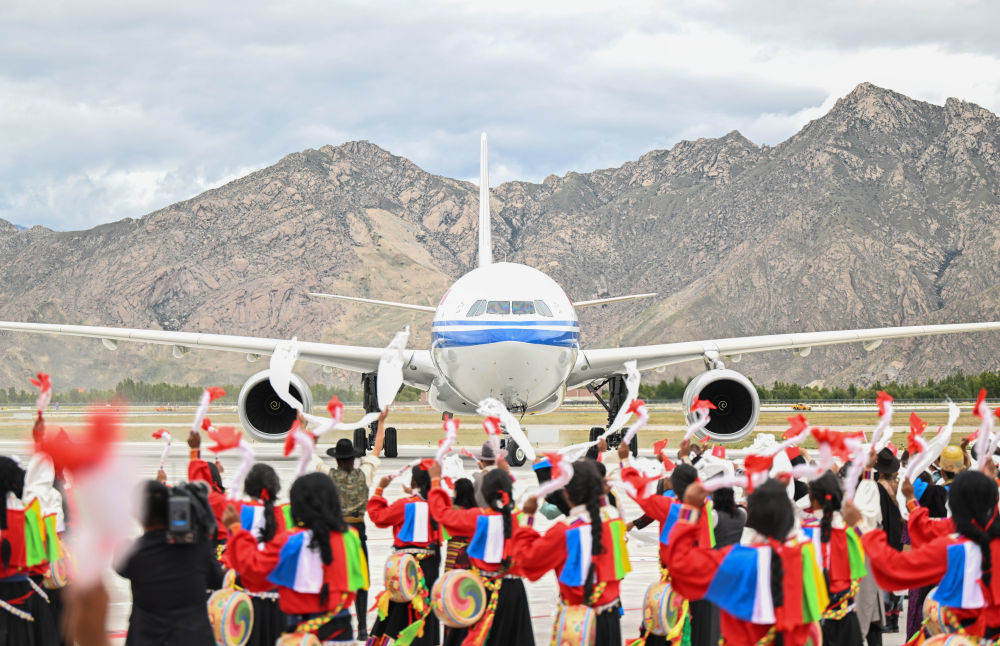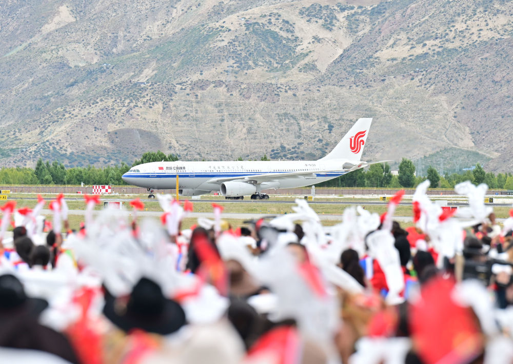 中共中央总书记、国家主席、中央军委主席习近平率中央代表团20日中午乘专机抵达拉萨,出席西藏自治区成立60周年庆祝活动。习近平等在机场和拉萨市区受到西藏各族群众的热烈欢迎。