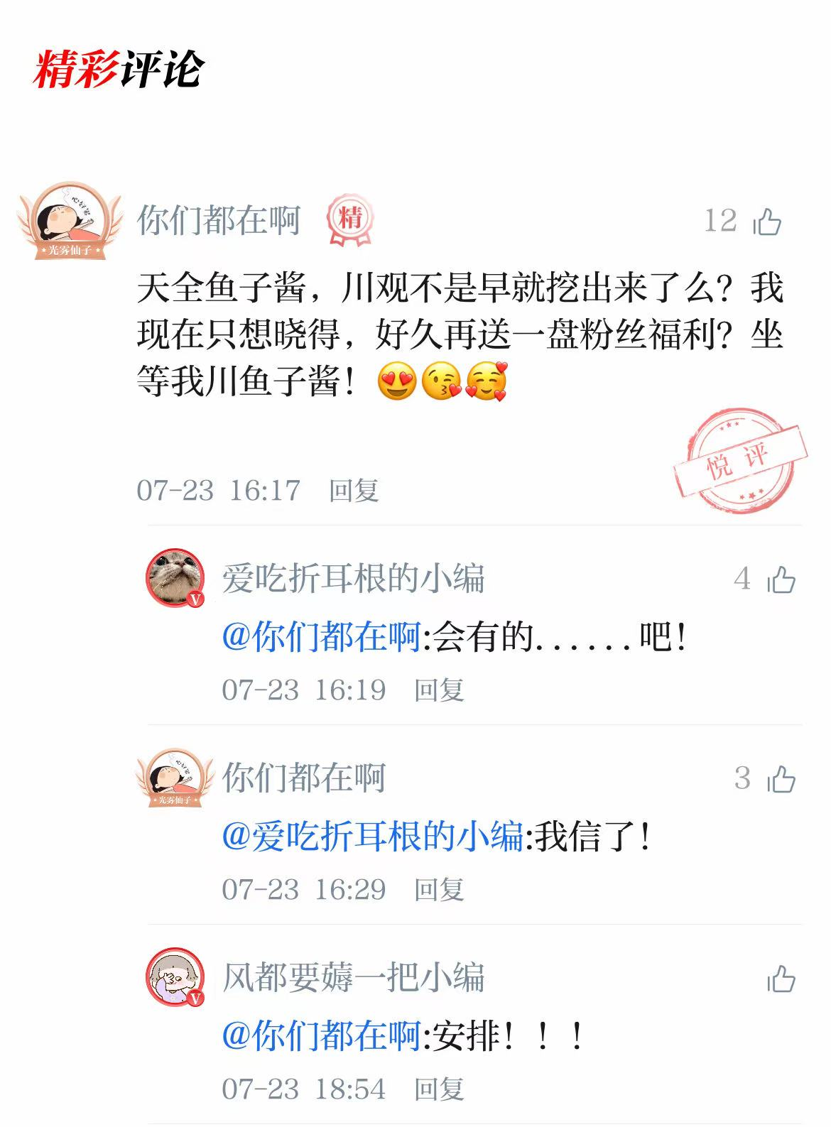 我来了!我来了!😍太给力了!真的安排上了啊!爱你哟,川观!疯狂笔芯!