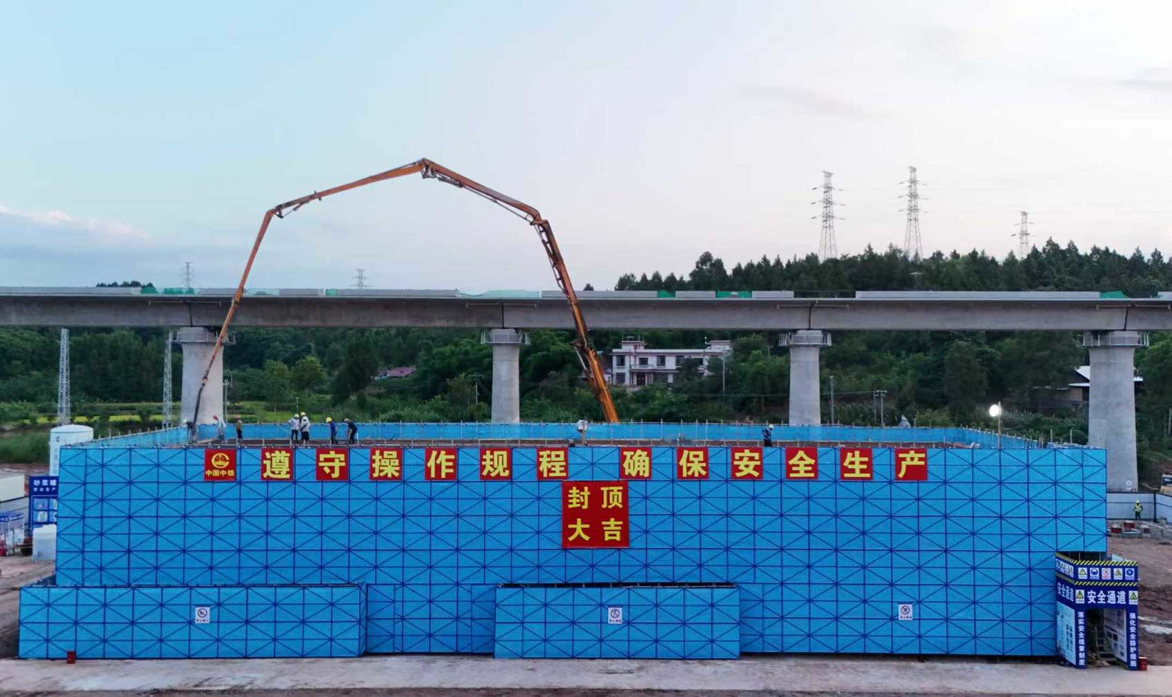 记者从长江沿岸铁路集团四川有限公司获悉,8月21日7时许,随着最后一方混凝土浇筑,由中国中铁电气化局集团参建的成都至重庆中线高速铁路(以下简称“成渝中线高铁”)四川段首座牵引变电所顺利封顶,标志着成渝中线高铁四川段“四电”工程正式进入攻坚阶段,为后续启动联调联试奠定了坚实基础。