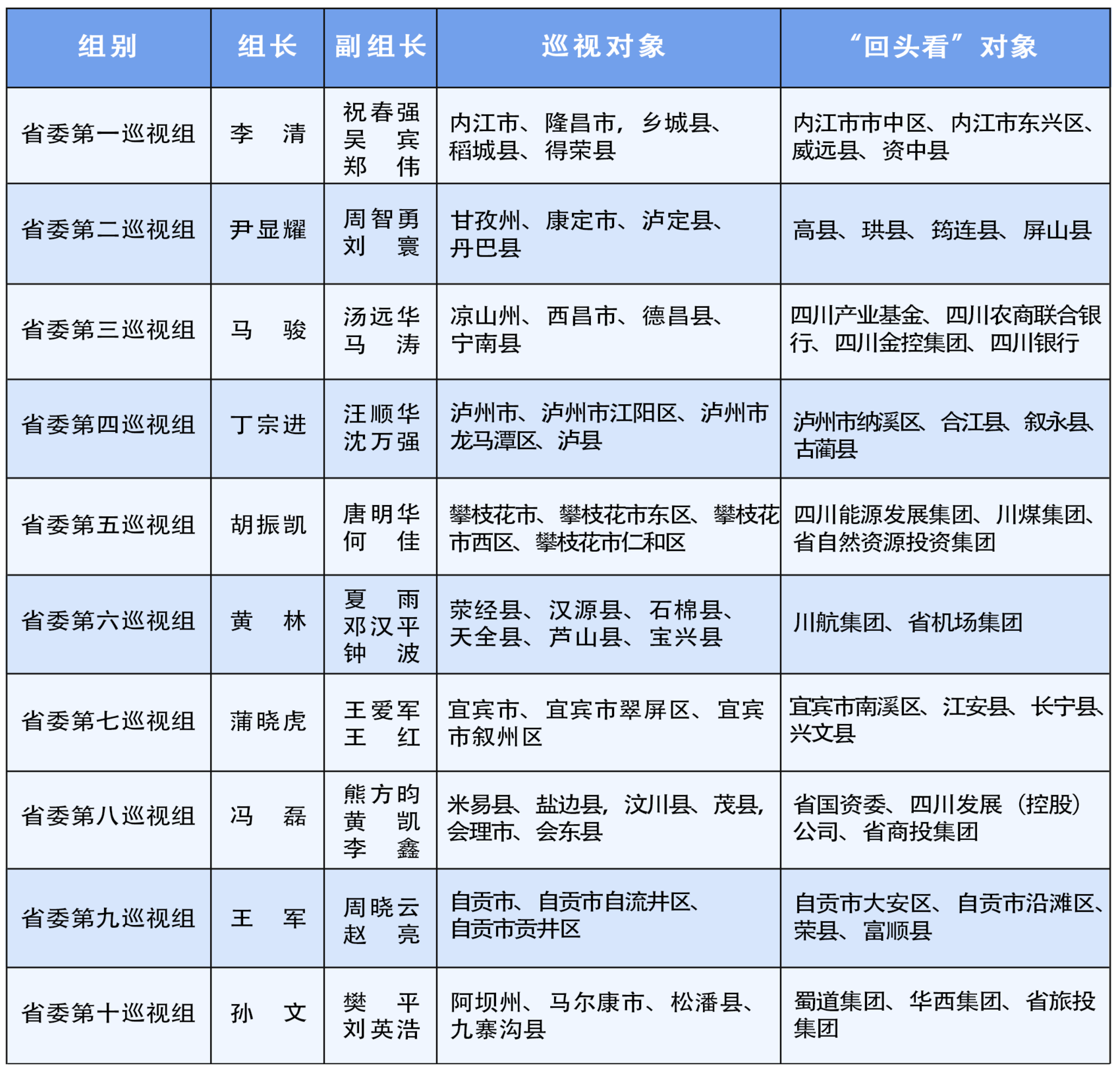 十二届省委第七轮巡视任务分工表
