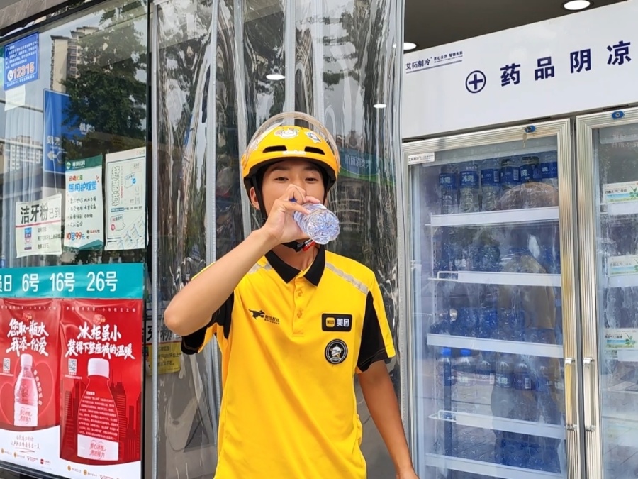外卖员喝到冰水那刻,肯定觉得超幸福吧