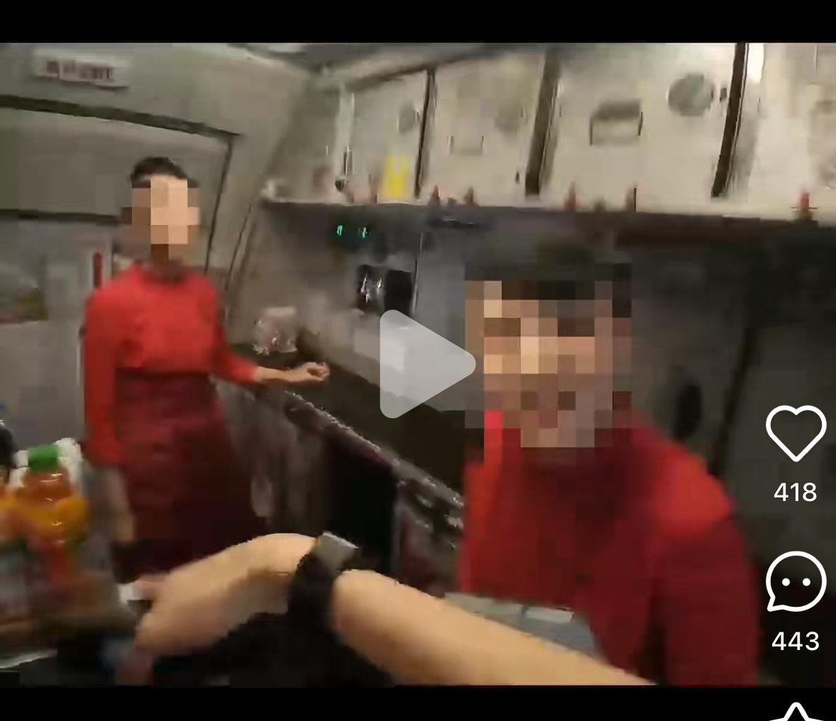 视频截图,乘客指挥乘务长摆餐。
