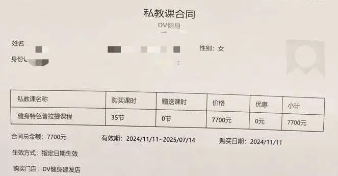 近日,成都消费者张女士向消费质量报投诉称,她从2024年6月开始在原V9健身建发鹭洲里店(现DV健身鹭洲里店)进行健身并购买私教课,四个月内被频繁更换教练,新接手的教练以“训练需要从头再来”等理由要求重新买课,期间张女士共购买了私教课课时123节。然而今年该健身房在装修升级、更换店名后,张女士被告知需要重新购买课时或再交一笔续课手续费后才能继续上课。对此张女士感到十分不满,要求该健身房退还剩余费用时又遇到重重阻碍。