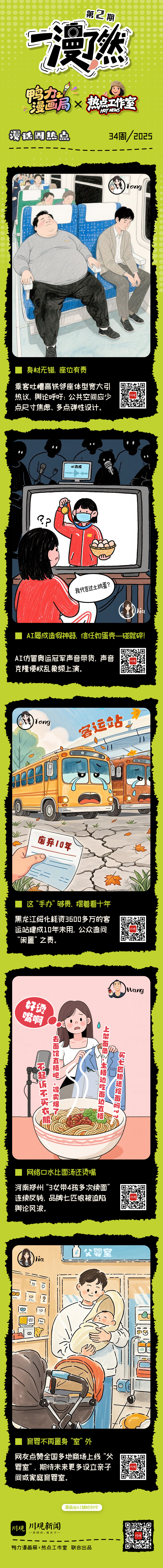栏目将聚焦每周最热辣的社会议题、政策新风、文化现象,让严肃新闻在妙笔生花的漫画中轻松解读,让复杂逻辑在生动笔触中“一漫了然”。