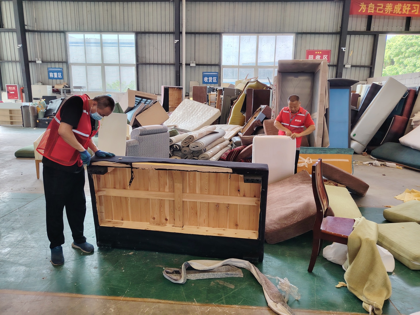 体积大、整体性强的废旧家具,通常也需要拆分后再进行处理。但是,目前大多数废旧家具的分拣拆解依然需要依赖人工操作,并不像其他废品能够通过机械化的手段完成。于是,人工成本也是一笔不菲的支出。