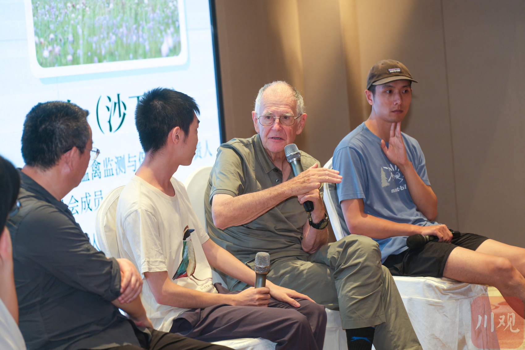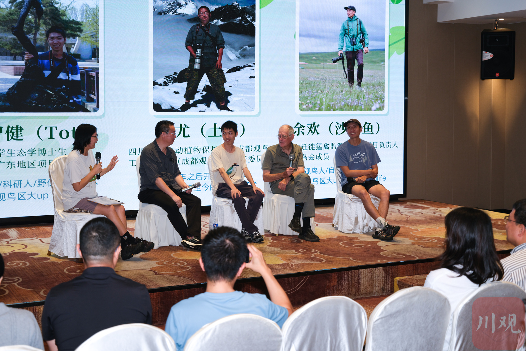 本次交流会特别邀请了国际知名鸟类学家、《中国鸟类野外手册》作者马敬能博士(Dr. John MacKinnon),与成都观鸟会主任委员沈尤、中国繁殖鸟类调查网络广东地区项目负责人梁智健以及青年观鸟人代表余欢,共同展开了一场跨越三代的观鸟人对话。嘉宾们围绕“从观鸟爱好到科学研究与保护行动”的主题,分享了各自在鸟类观察、公民科学参与及生态保护推广过程中的心路历程和实践经验。