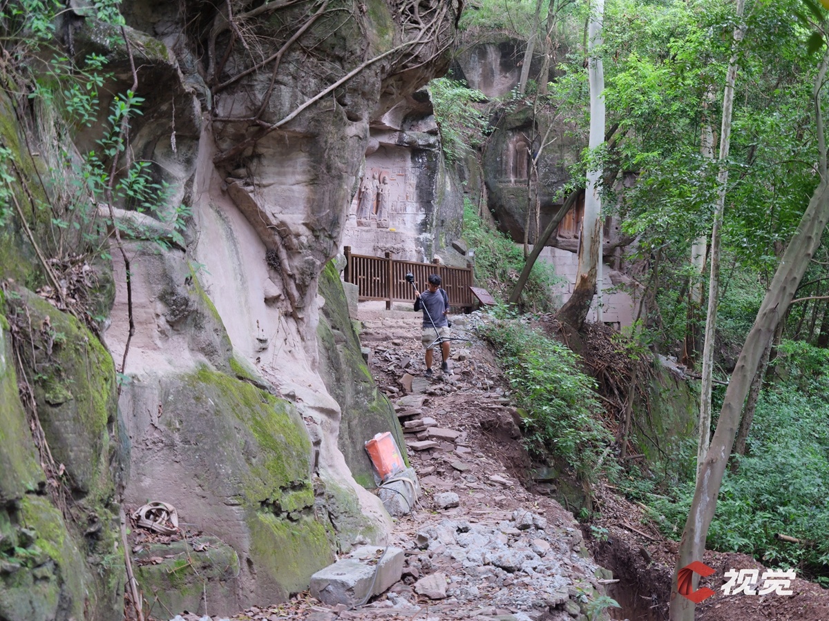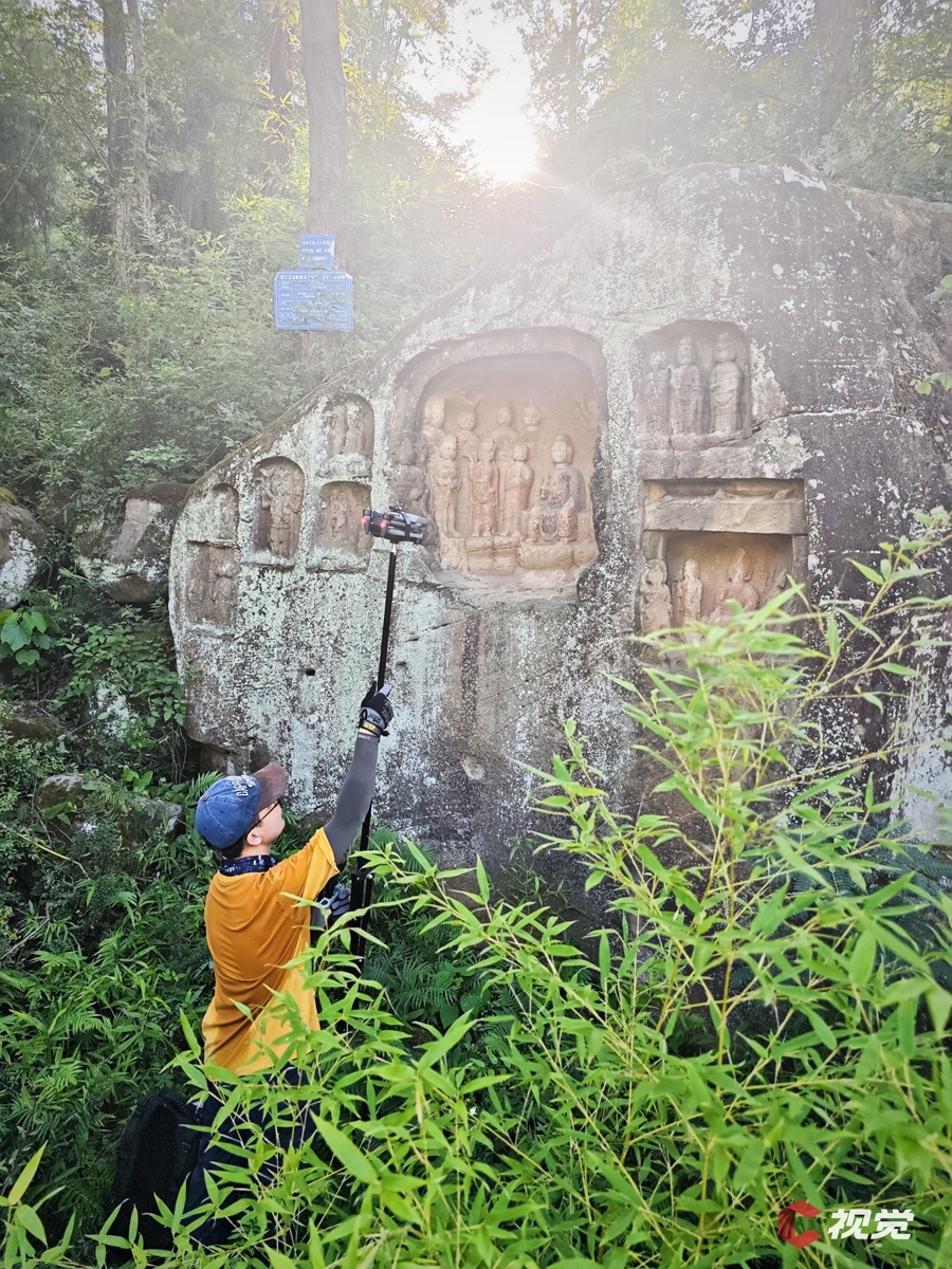 8月19日,C空间工作人员对“国保”资阳市半月山摩崖造像进行数字化采集。
