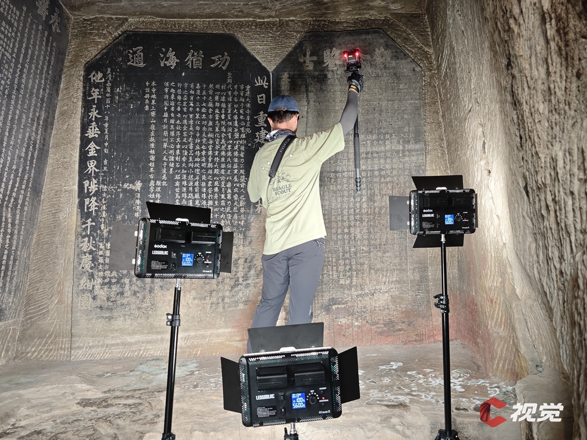 7月25日,C空间工作人员对“国保”阆中市大像山摩崖造像中的石碑进行精细扫描。