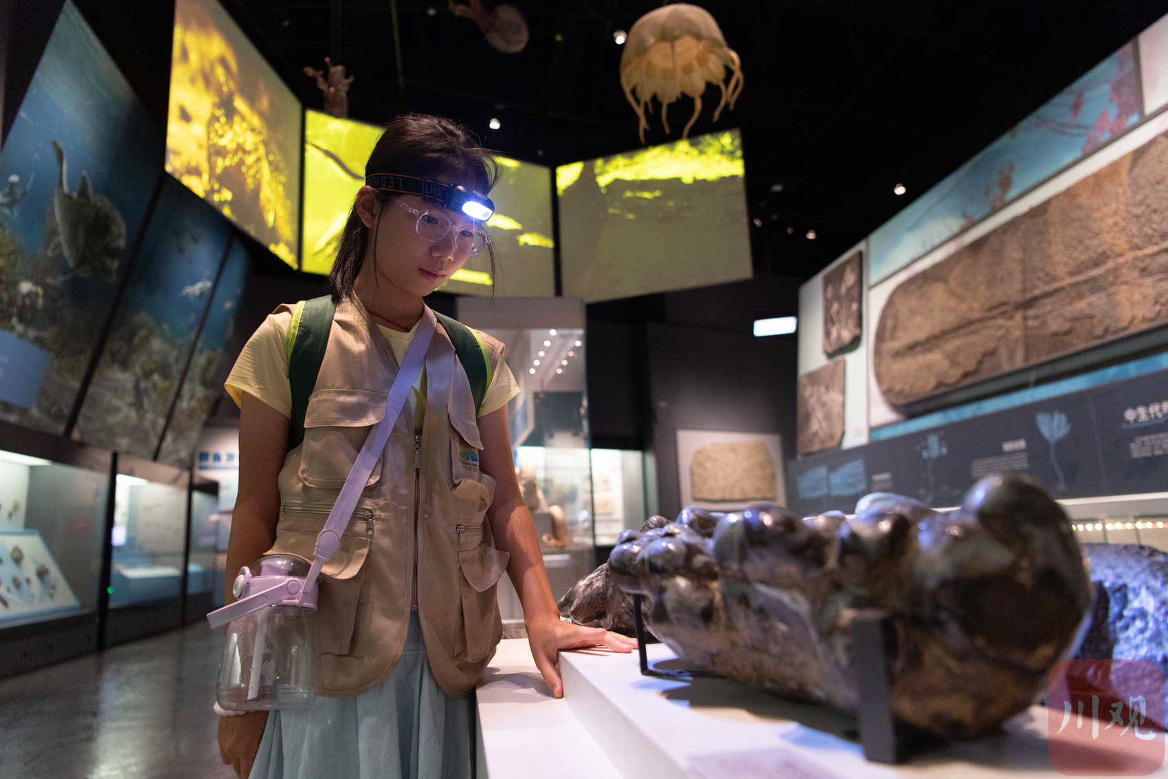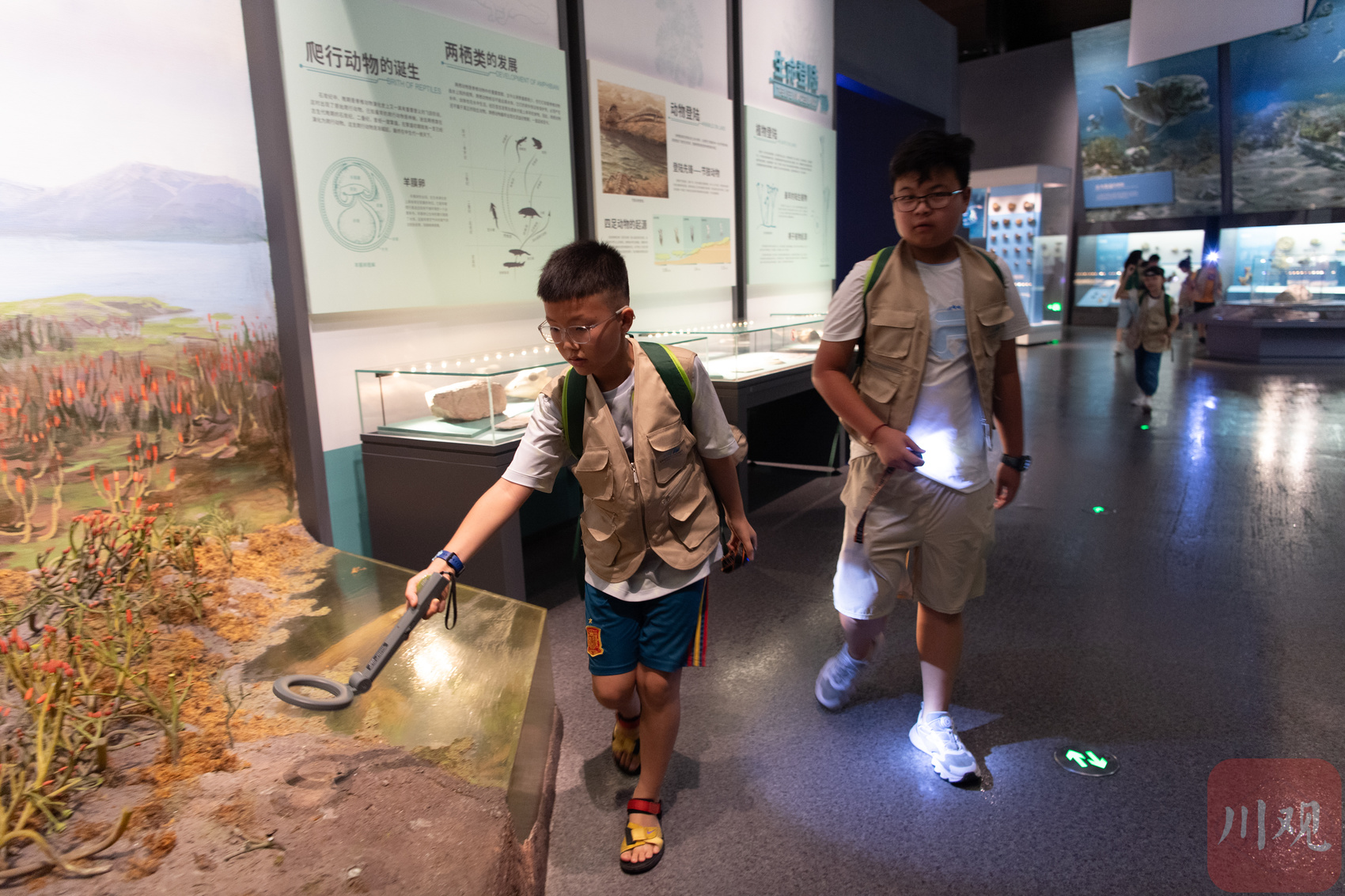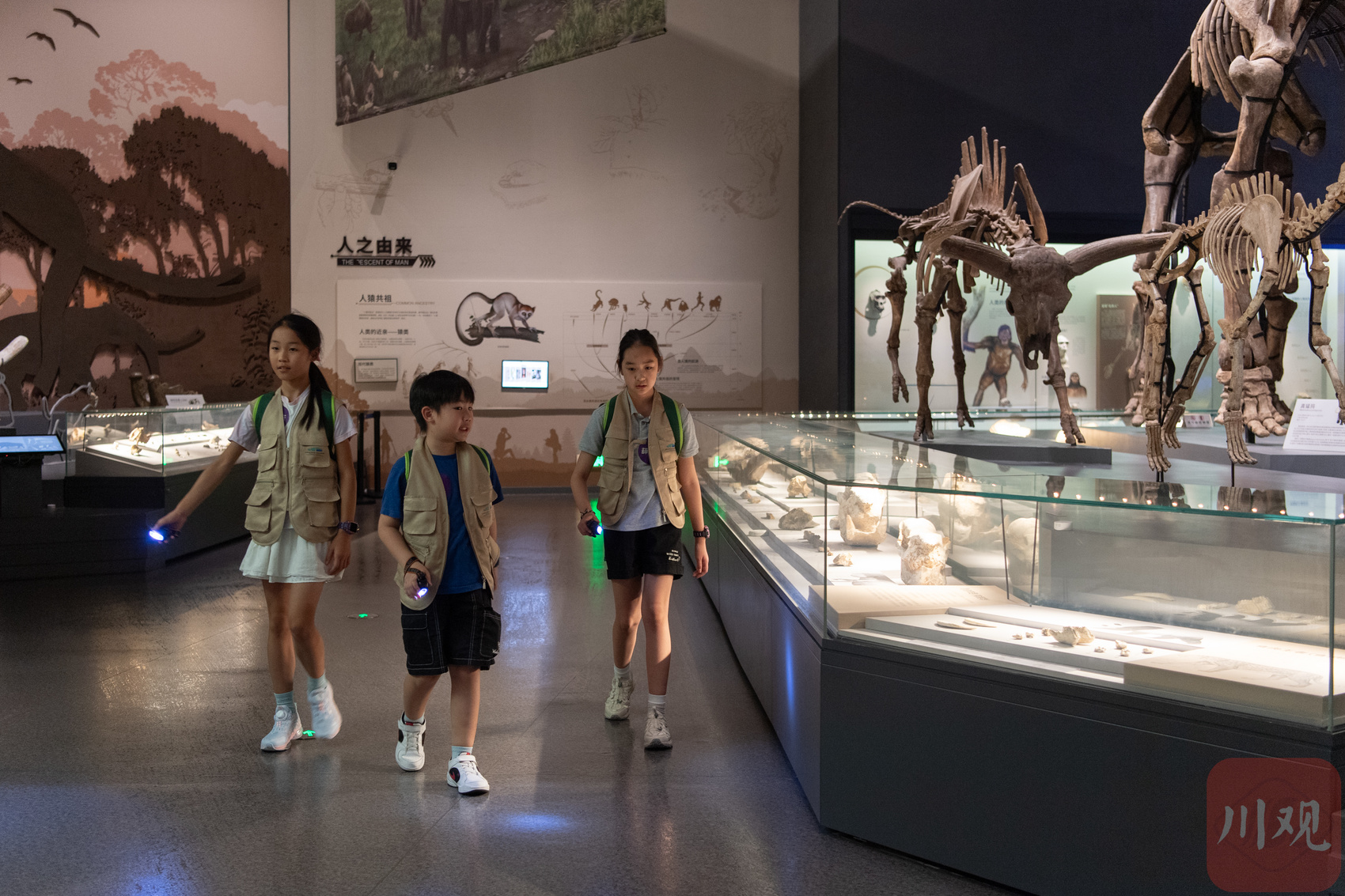 8月24日晚,小学生们走进成都自然博物馆开启探索之旅。