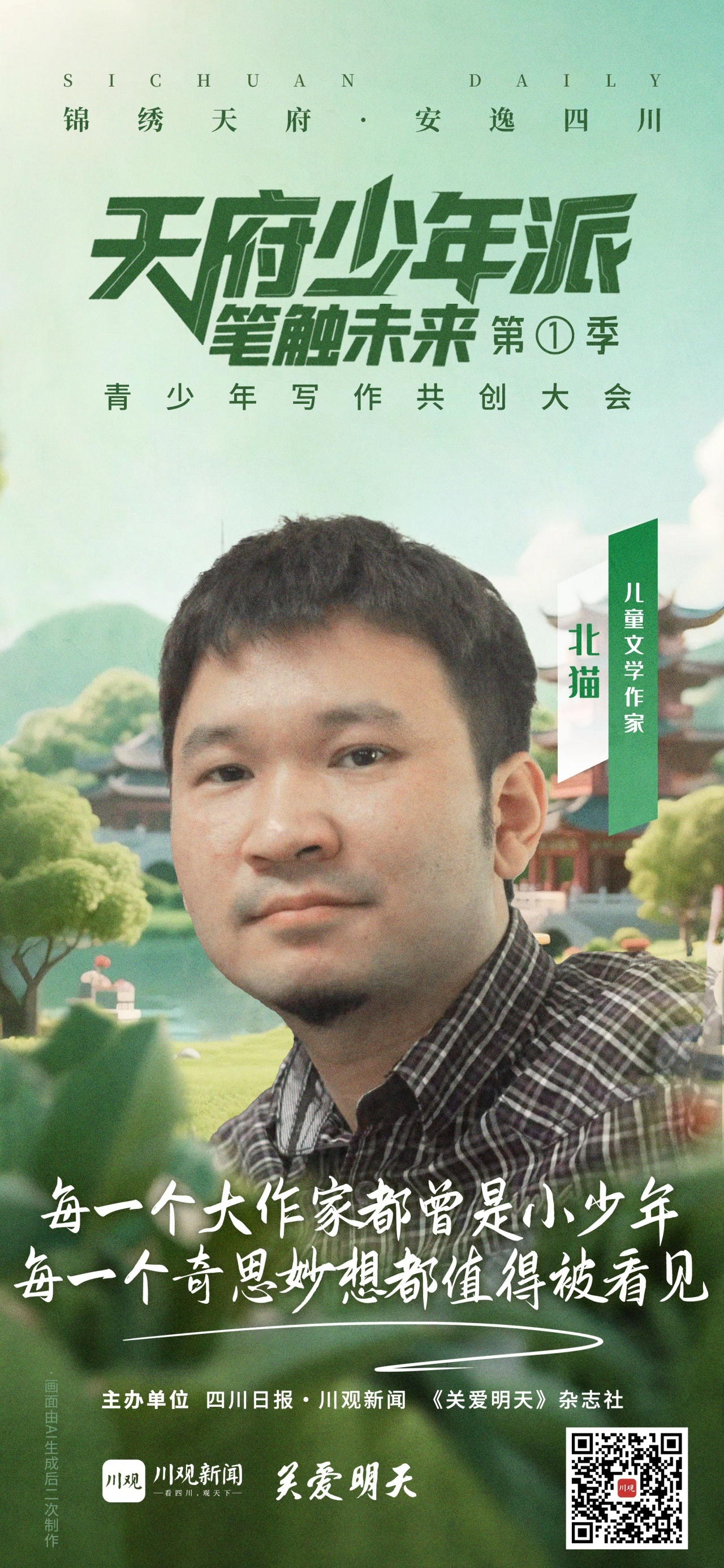 “天府少年派·笔触未来”青少年写作共创大会由四川日报社、《关爱明天》杂志社联合主办,每季度举办一次,通过季度性主题征文,引导青少年以文字记录生活,激发创作热情,提升文学素养,培育家国情怀。