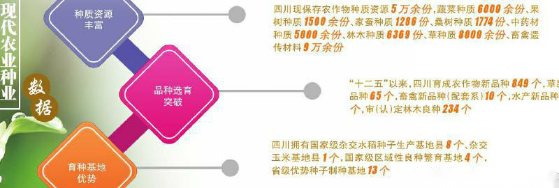 四川是我国农作物、畜禽、水产和林草等种质资源最为丰富的地区之一,现保存农作物种质资源5万余份,保存蔬菜种质6000余份。丰富的种质资源,是四川种业发展的重要优势之一。
