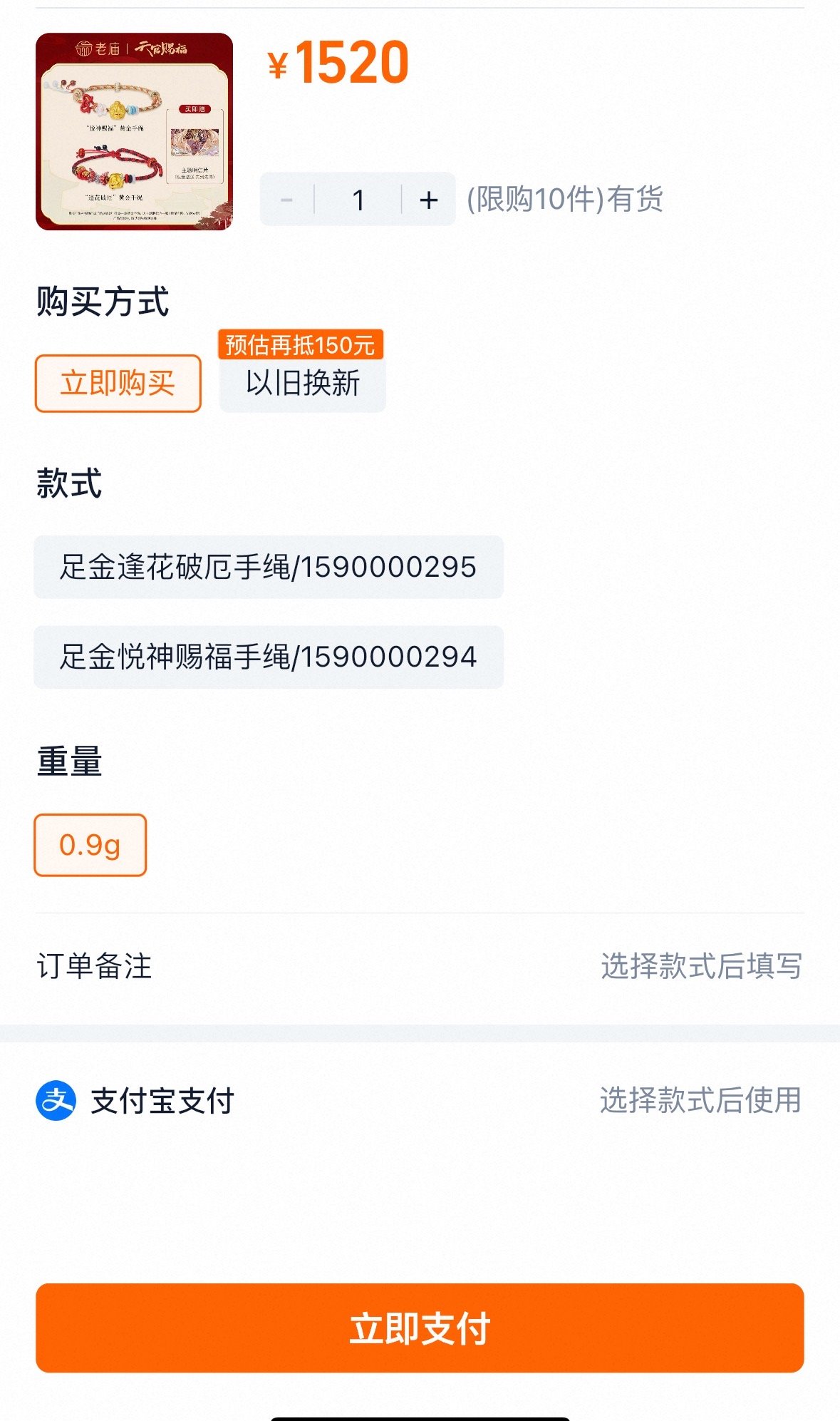 7月,老庙黄金与《天官赐福》动画联名,推出一系列黄金饰品,包括黄金手绳、转运珠、金钞等。记者在该品牌的电商平台旗舰店看到,销量不错的联名产品有天官赐福等,0.9克的“足金逢花破厄手绳”售价为1520元,0.1克的“足金谢怜款御守”金钞售价为259元。
