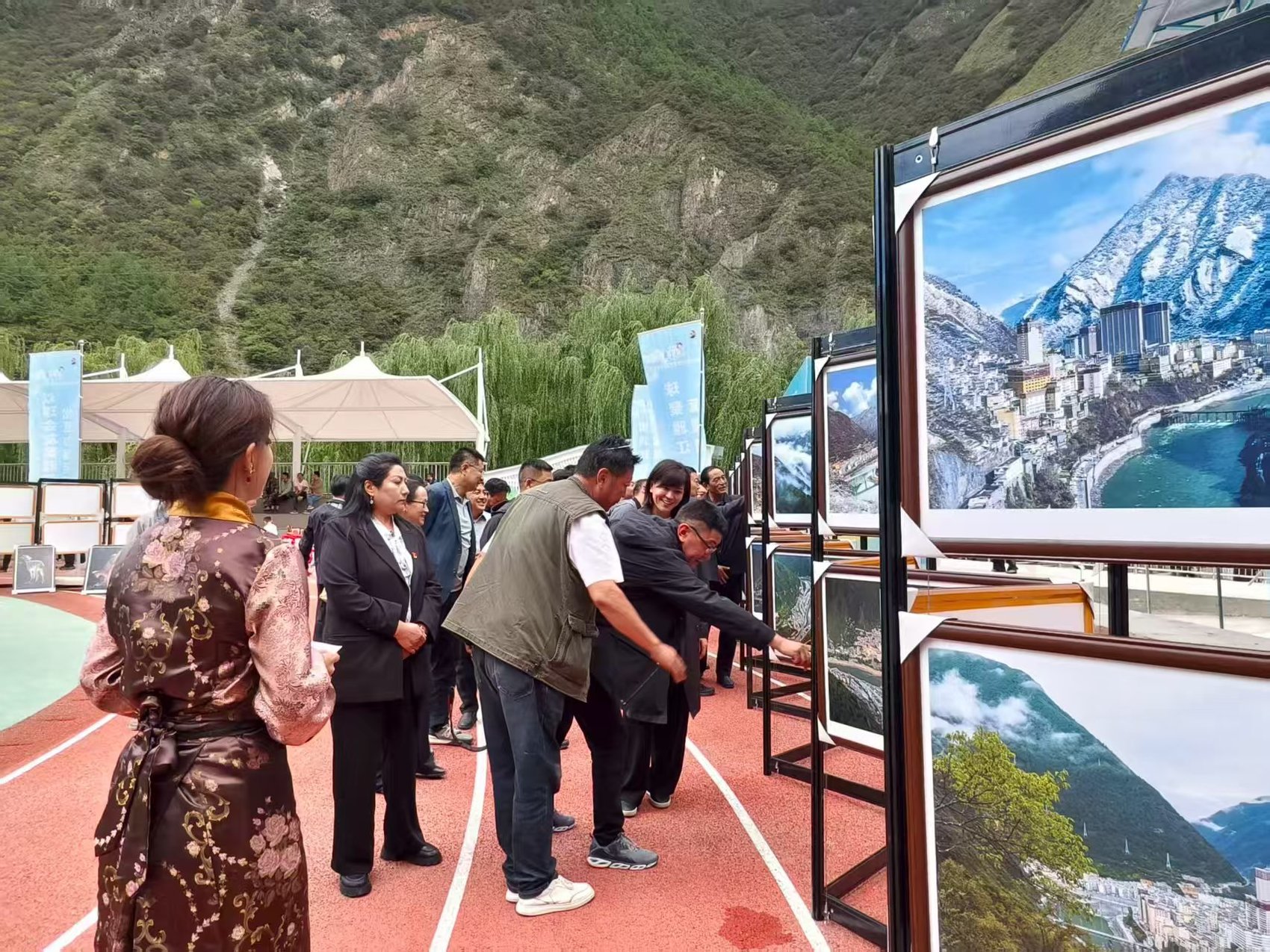 摄影展区作为现场“人气焦点”,以纪实镜头勾勒雅江“生态之美”与“奋进之姿”。其中,既有松茸采摘季里,采收松茸的鲜活场景,展现雅江依托得天独厚的生态资源发展特色产业、带动群众增收的实践;也有县城高楼与老街区交相辉映、乡村公路蜿蜒至乡村的画面,清晰呈现城镇化推进与乡村振兴战略下,雅江基础设施建设的跨越式发展。