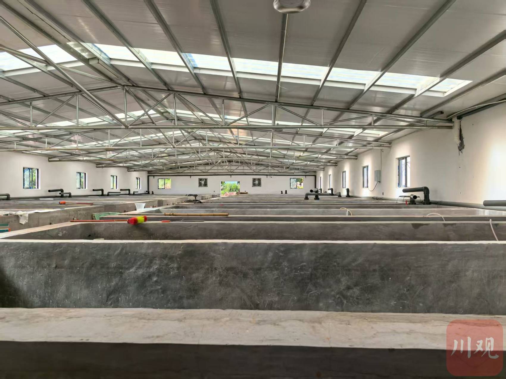 养殖车间里,池子错落有致。
