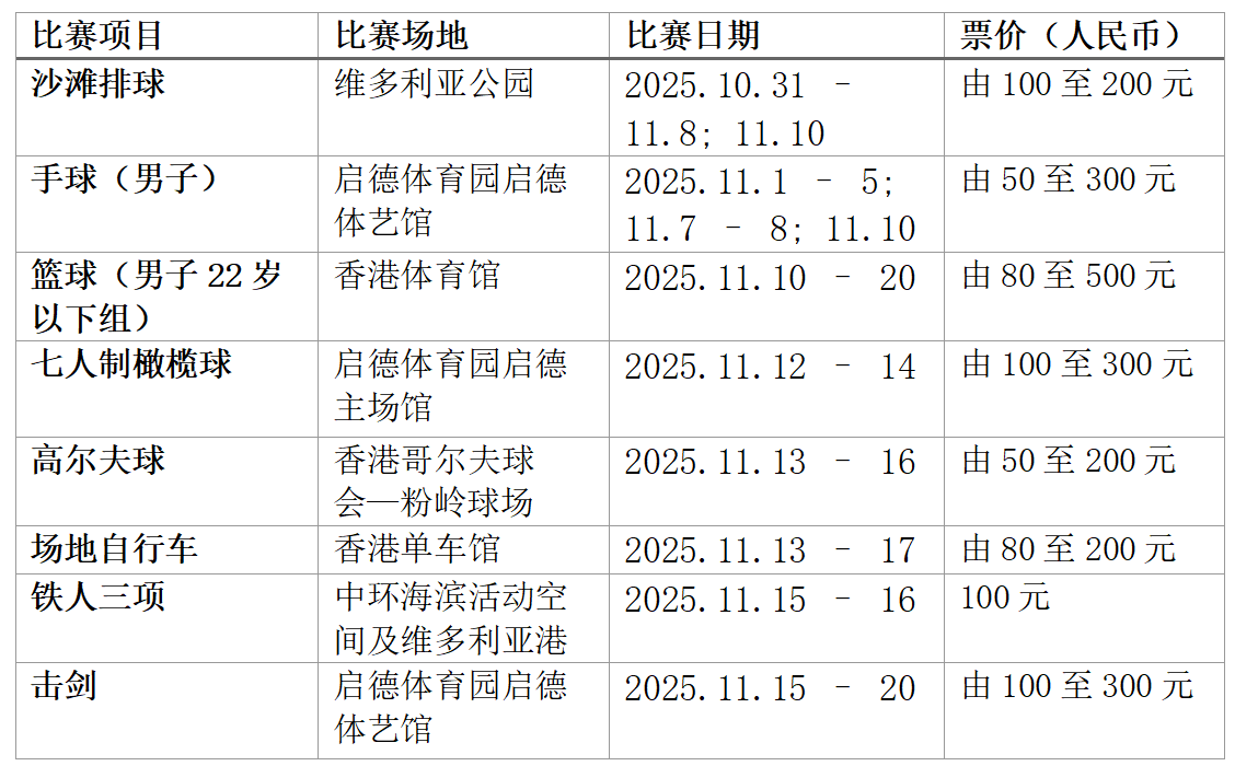此外,十五运会期间,香港也将有多项世界级盛事活动举行,大家不容错过: