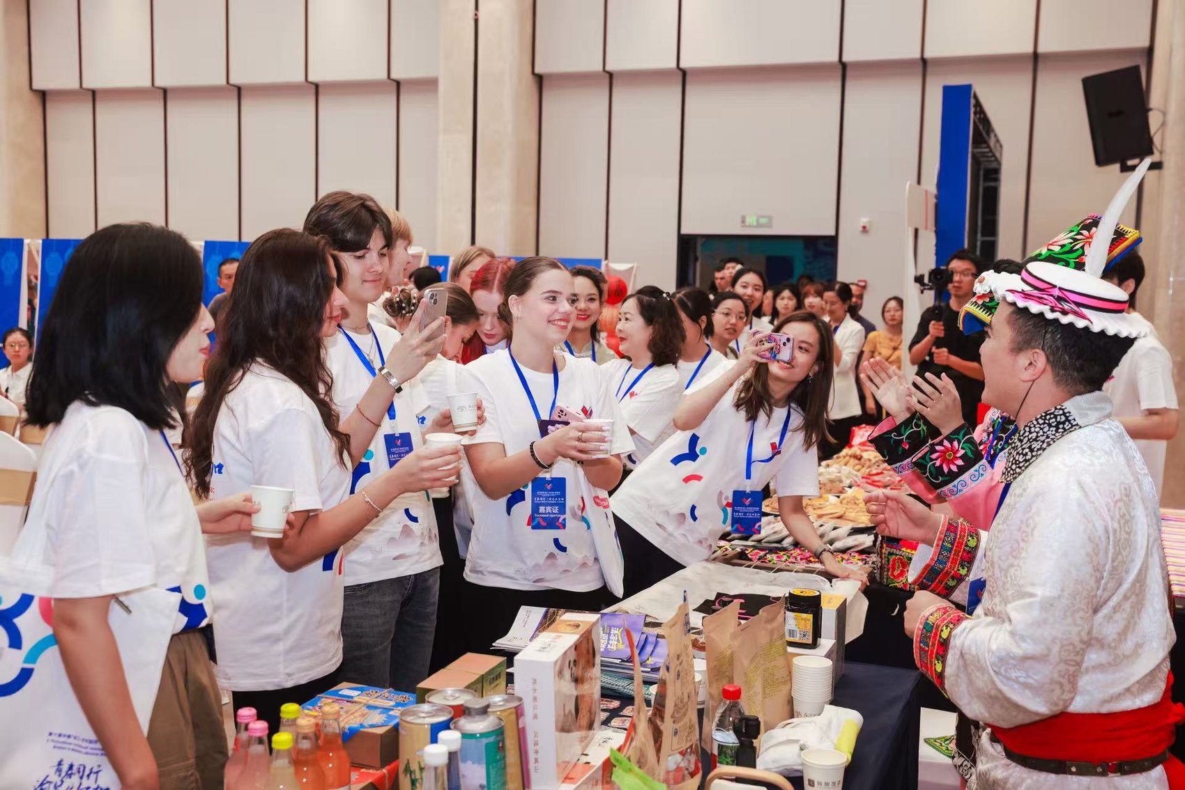 作为回应,“俄罗斯日”同样充满惊喜。除了维露带来的巧克力糖、传统列巴和套娃,来自伏尔加河沿岸联邦区的青年们还摆出了俄罗斯传统蛋糕,椴树蜜香甜扑鼻;马里埃尔共和国的姑娘们用传统手法编制的小挂件,让四川姑娘们爱不释手。“这是我们家乡的手工羊毛围巾,每一条纹路都讲述着伏尔加河的故事。”来自奥伦堡州的伊琳娜介绍,“希望通过这些小物件,让中国朋友感受到俄罗斯文化的温度。”