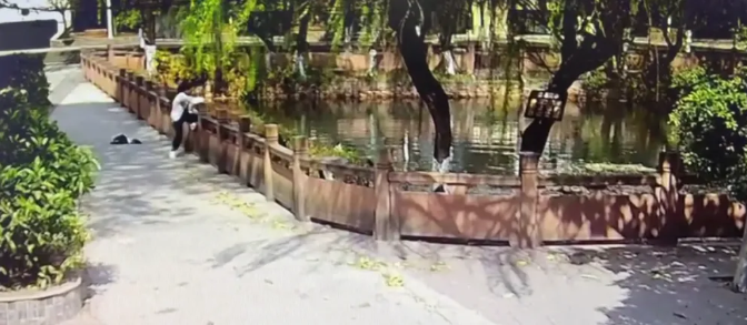 且沙么子扎迅速将岸上的两名小孩带到安全地带,然后立即返回水塘边。她丢下书包,跨过栏杆,试图用自己随身携带的训练带抛给水中挣扎的孩子。
