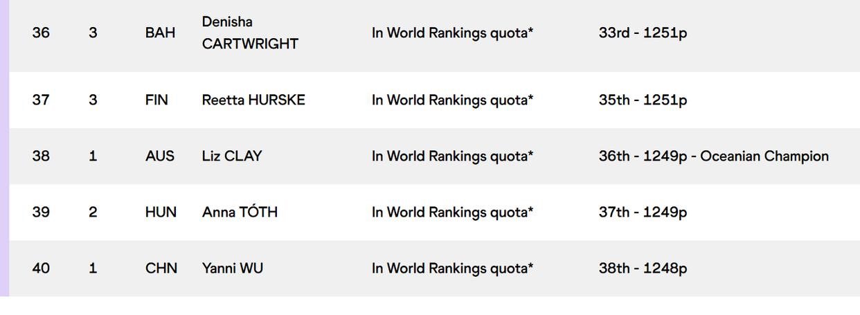 根据世界田联公布的2025年东京田径世锦赛参赛资格要求,运动员主要通过达标成绩、世界排名积分或特定赛事晋级三种方式获得。其中,直接达标要求运动员需达到世界田联设定的项目达标成绩,达标周期内成绩有效。世界排名积分:未达标选手可通过积累世界田联积分排名晋级。团队项目晋级,接力类项目通过世锦赛资格赛(如世界田联接力赛)获取名额,例如4×100米接力前14名队伍可直接入围。2025年东京田径世锦赛女子100米栏的官方达标成绩为12秒73。中国现役女子100米栏选手中,无人达到12秒73的直接达标线——国内女子跨栏选手中,吴艳妮和林雨薇的个人最好成绩只是12秒74,未达到直通世锦赛的成绩。更何况本赛季她们的成绩相比个人最好成绩,还有很大的差距。但吴艳妮世界排名第38位,按照2025年东京田径世锦赛女子100米栏项目40个积分名额,吴艳妮正好排名第40位,因此压线获得东京世锦赛的参赛资格。