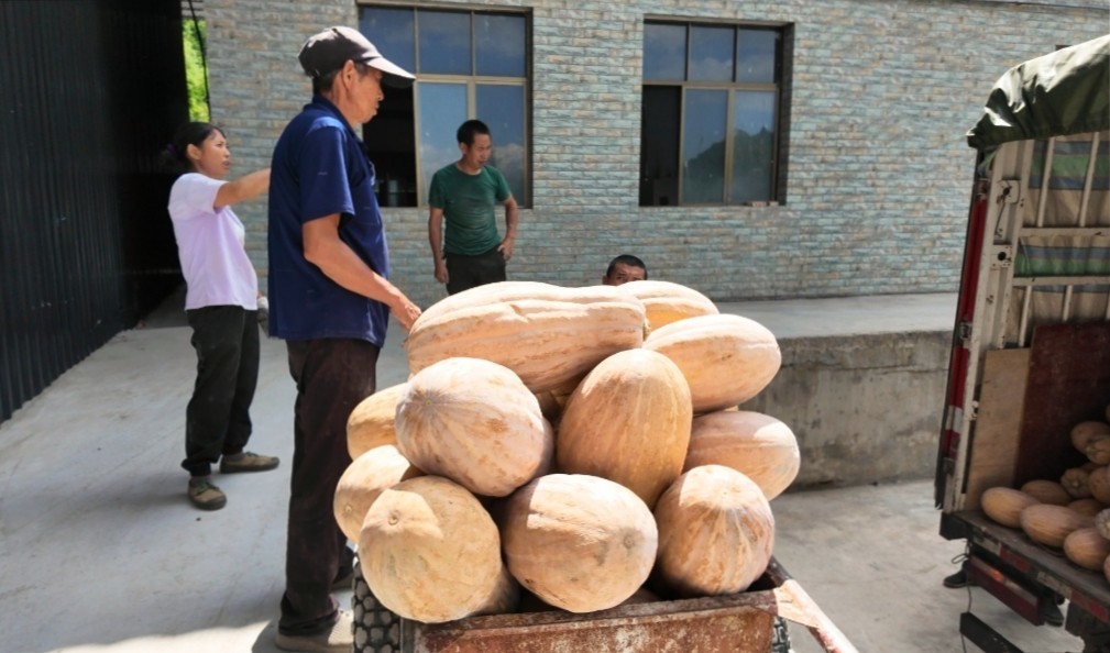 4月中下旬,南瓜逐步种下。7月底,老南瓜开始采摘。过去1个月时间,来自山东、浙江的经销商上门收购,迄今南瓜已卖出27万斤。