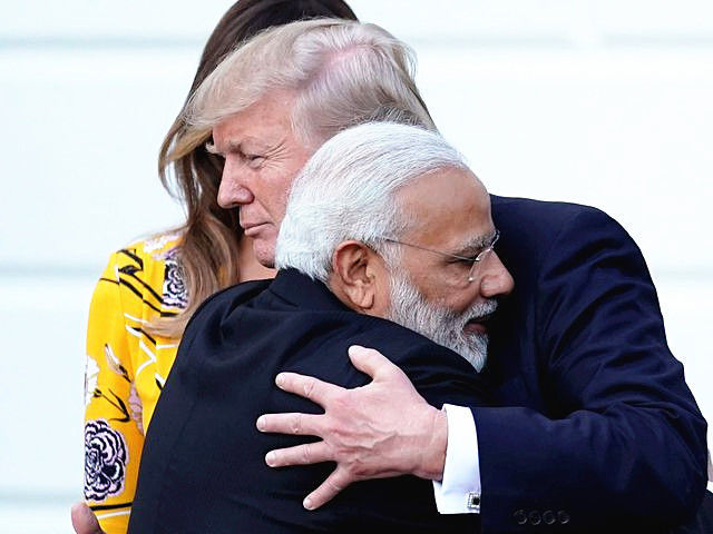 2017年6月26日,白宫,美国总统特朗普(右)与印度总理莫迪拥抱话别。(新华/ 路透)
