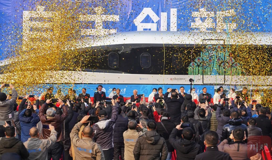 1月13日上午,具有完全自主知识产权的高温超导高速磁浮工程化样车及试验线在西南交通大学九里校区正式启用。静静浮在轨道上的样车揭开“红盖头”的那一刹那,西南交通大学超高速真空管道磁浮交通研究中心首席科学家张卫华的眼睛湿了。