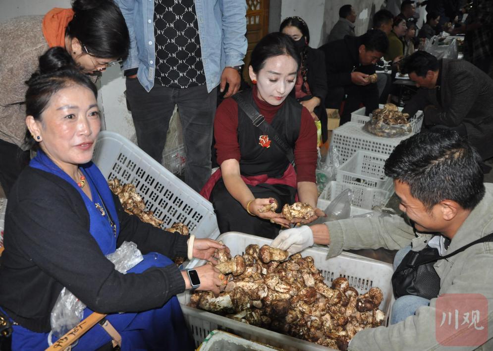 雅江县松茸交易中心村民售卖松茸热闹场景