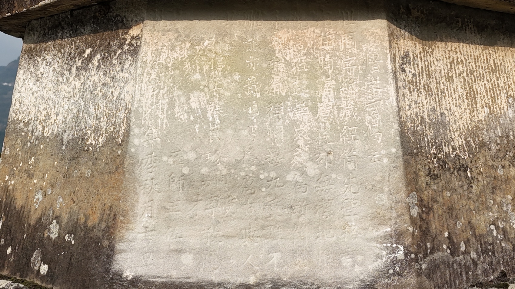 尤值得称道的是,塔身第二层设有一处焚纸炉膛,正面开倒U形投纸口,用于焚烧字纸,背面则刻有捐建题记和一首《惜字宫偈》七言诗。虽因风化部分字迹模糊,但仍可辨识出“世间字纸藏经筒”“瑞气祥烟接九香”等句子,传达出“敬惜字纸”的传统理念。题记也清晰记载了建造者——信士张良珍与他的三个儿子,以及匠师王佐,落款为“乾隆四十八年季秋月吉旦”,正是1783年秋天。