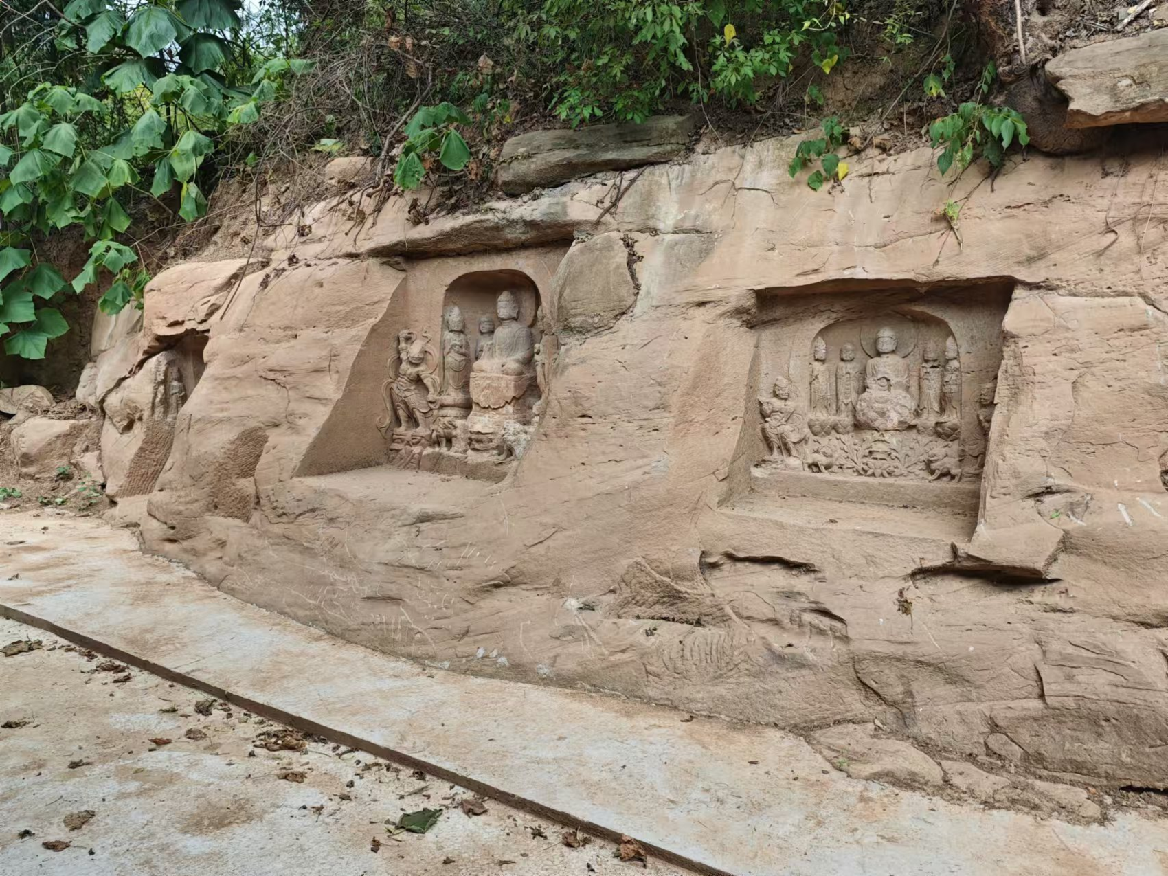 2024年4月,四川省文物考古研究院组织专家现场勘查,确认这三龛造像为唐代早期至中期作品,题材为一佛二弟子二菩萨配以金刚、神兽等,人物面容饱满、衣纹流畅,虽局部略有风化,但整体保存状况较好,艺术与历史价值显著。