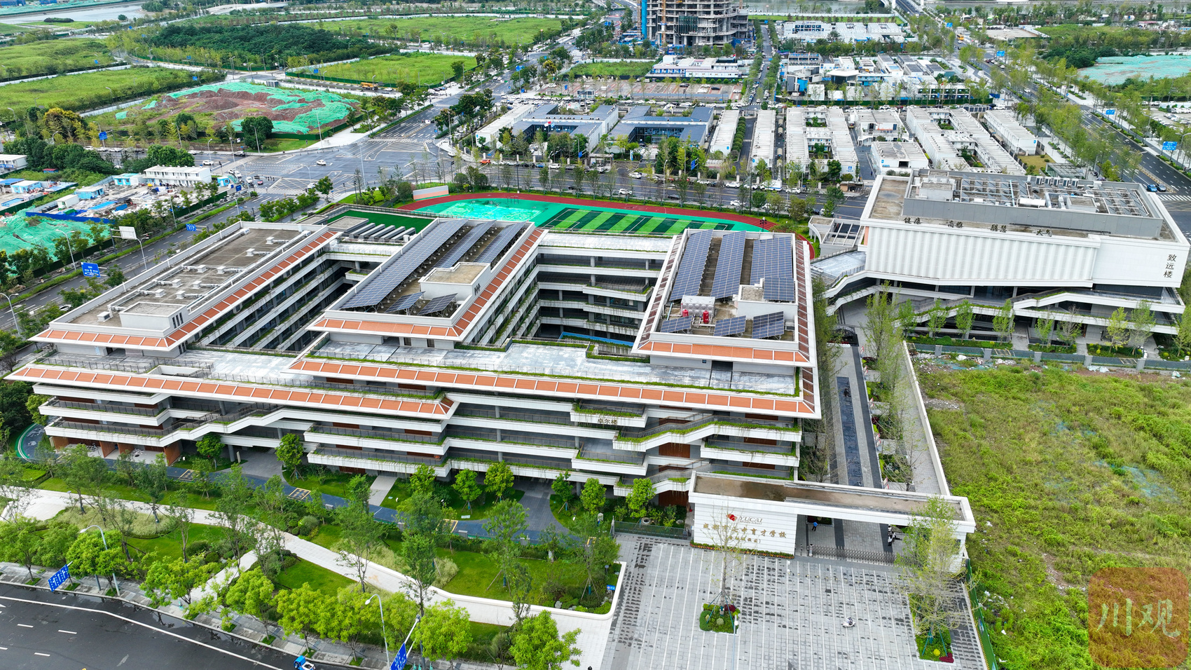 成都市七中育才学校金融城校区航拍。