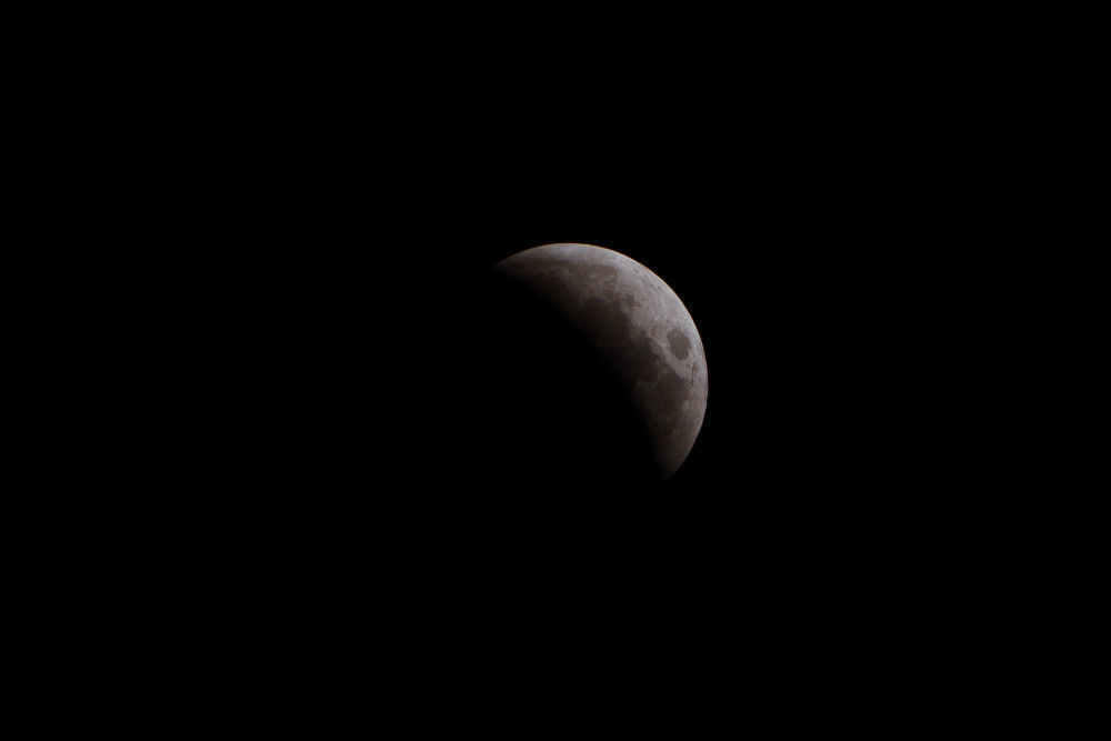 ↑这是2025年3月14日在巴拿马首都巴拿马城拍摄的月食。新华社记者 许咏政 摄