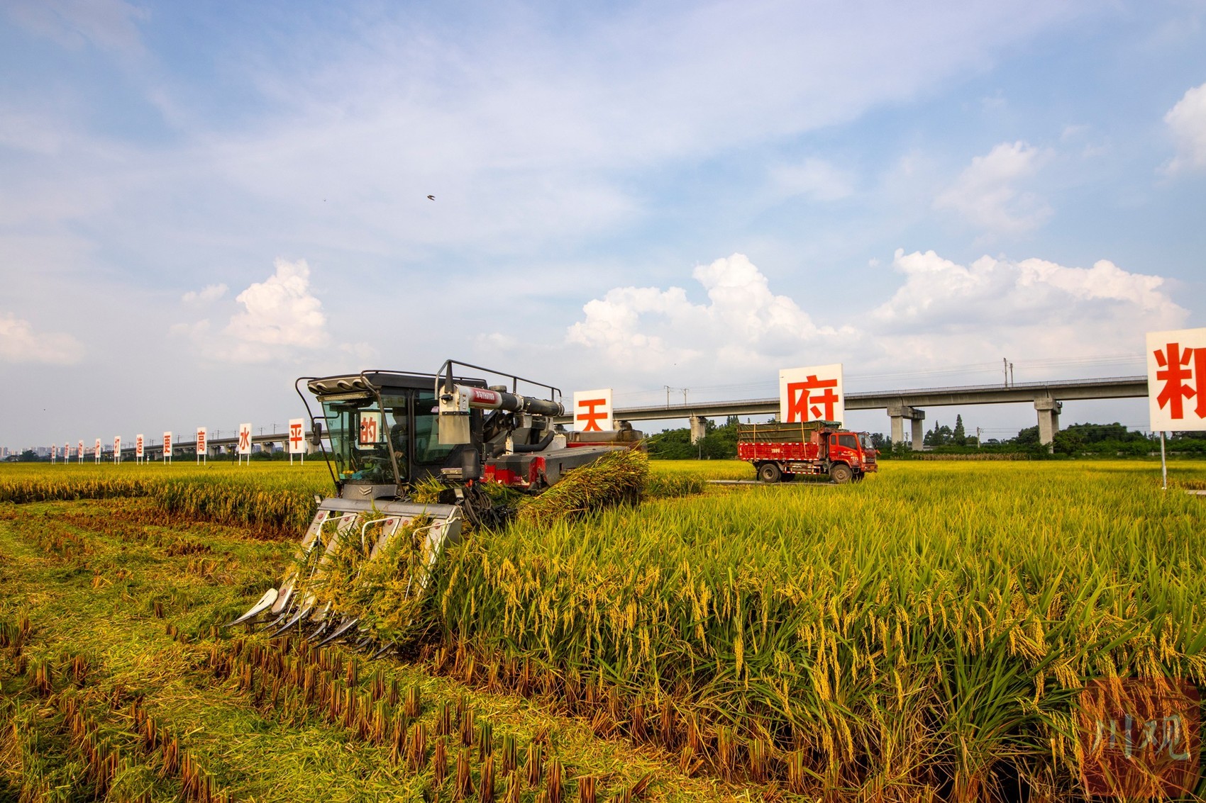 这一季的丰收,也写在农业生产模式的创新里。8月26日,泸州市叙永县大石镇旺龙村勇闯种植家庭农场,村民挥镰收割一种特殊的“中医稻谷”。今年,农场与四川省农业科学院合作,首次采用“中医农业”技术,用黄连、黄芩、苦参等十余味中草药制剂替代农药、化肥,既防控病虫害,又修复改良土壤,成功收获无农残、高品质稻谷,亩产逾700斤。这片百亩示范基地,为农业绿色、可持续发展探出了新路。8月27日,在成都平原的崇州市隆兴镇,四川农业大学现代农业研发基地内,科研人员正对新品水稻“雅香9A/CK51”分类测产,以期筛选出更优质、高产、抗逆的新品种。