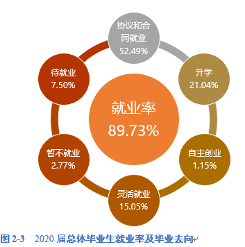 学校2020届毕业生共8470人,其中本科毕业生6868人,毕业研究生1602人。本科毕业生就业率为88.36%,研究生就业率为95.57%。