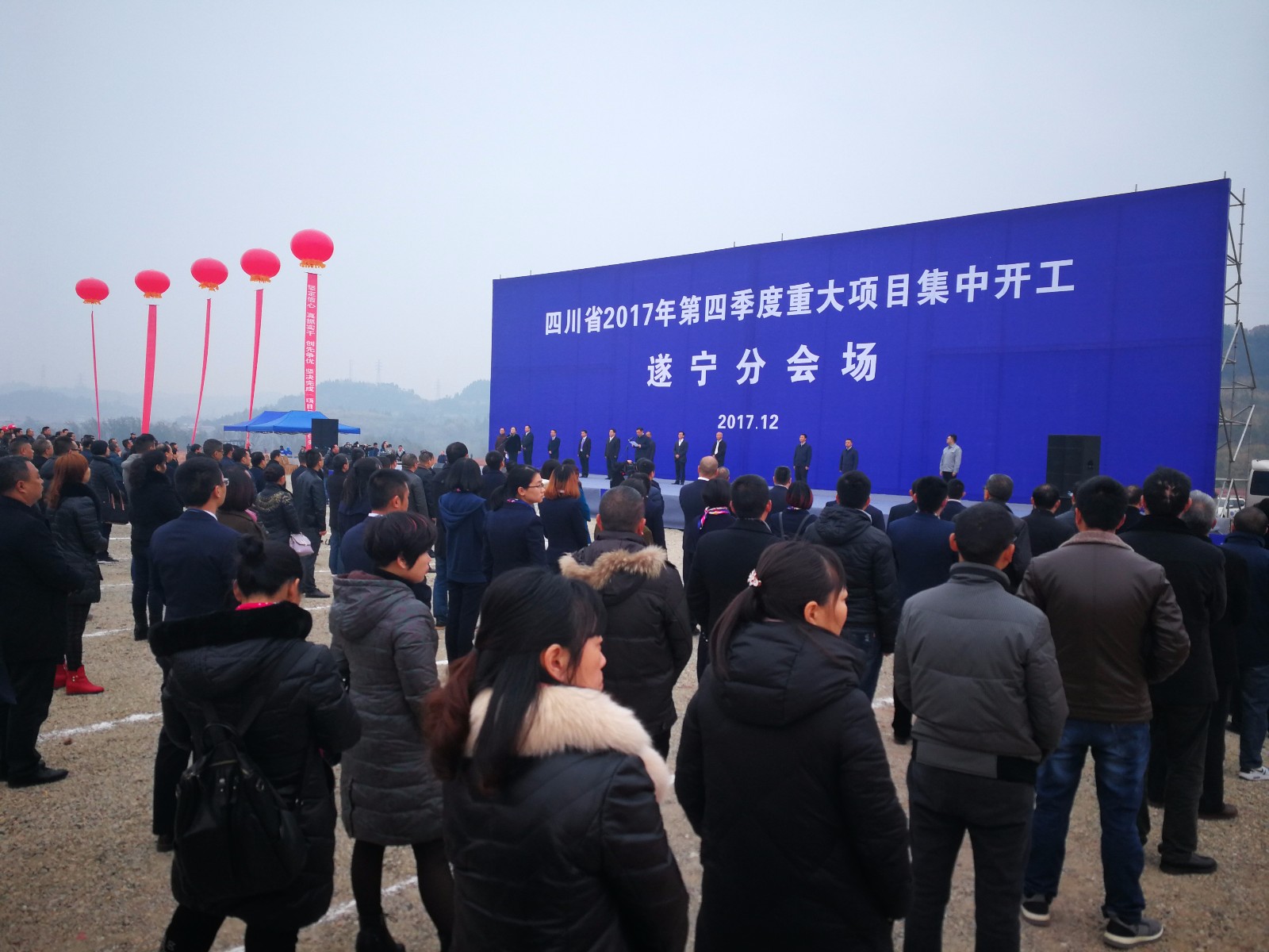 12月12日,全省2017年第四季度重大项目集中开工遂宁分会场在大英县工业集中区举行。遂宁全市104个重大项目集中开工,估算总投资额达443亿元,其中,计划投资10亿元以上项目12个,计划投资亿元以上项目61个。