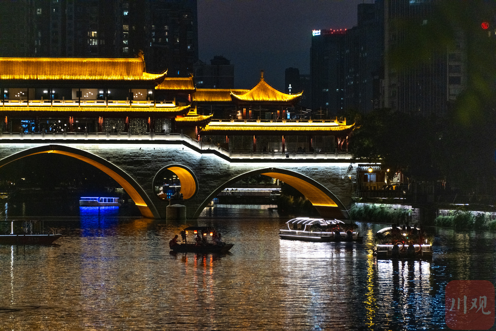 夜游锦江项目推出以来,迅速成为成都夜间旅游新地标。