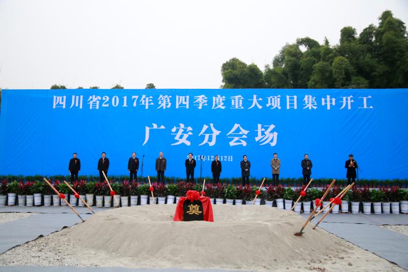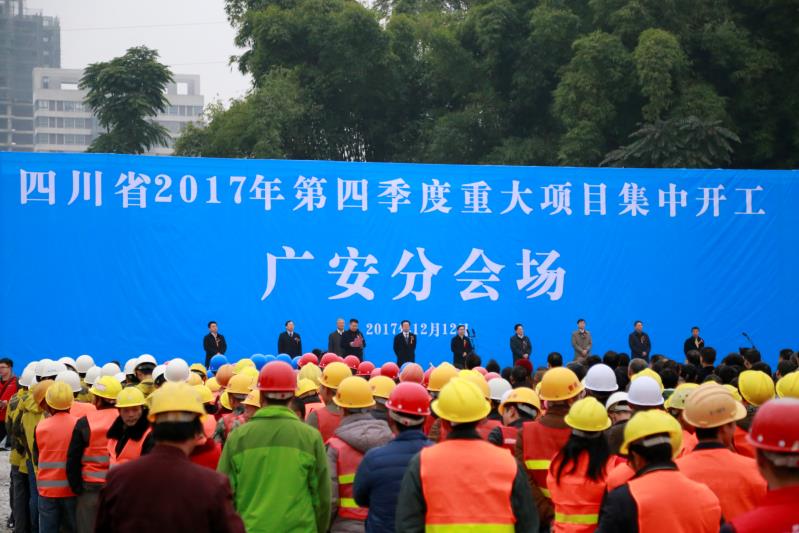 12月12日上午,全省2017年第四季度重大项目集中开工仪式广安分会场在广安铁路枢纽物流孵化园项目现场举行。当天,广安铁路枢纽物流孵化园项目等53个项目集中开工,总投资191.6亿元。