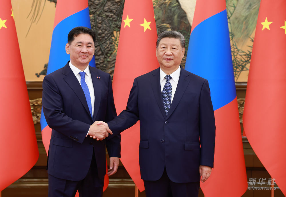 9月2日上午,国家主席习近平在北京人民大会堂会见来华出席2025年上海合作组织峰会和纪念中国人民抗日战争暨世界反法西斯战争胜利80周年活动的蒙古国总统呼日勒苏赫。