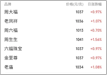 随着国际金价走势愈发强劲,国内多家品牌金饰价格持续上涨。具体来看,9月2日,周生生饰品价格来到1041元/克的高位,较昨日1025元/克的报价上涨16元。另外,老凤祥、周大福、六福珠宝等品牌金饰价格均有不同程度的涨幅。