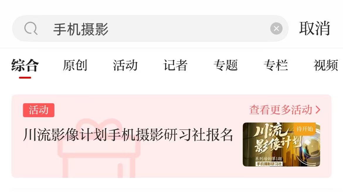 方式三:在川观新闻首页顶部搜索框输入“手机摄影”,点击活动链接即可参与报名。