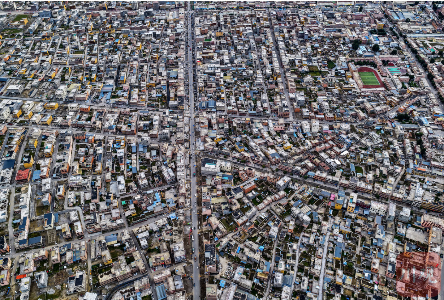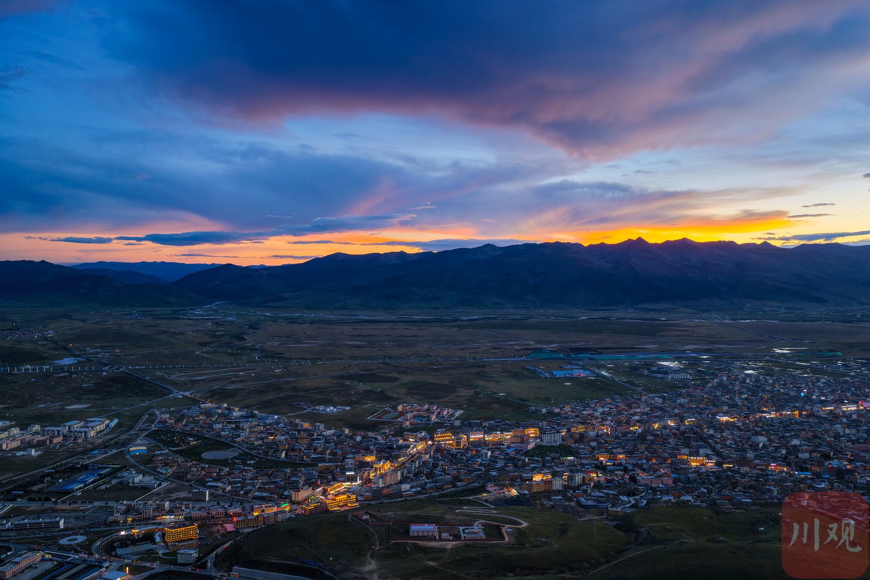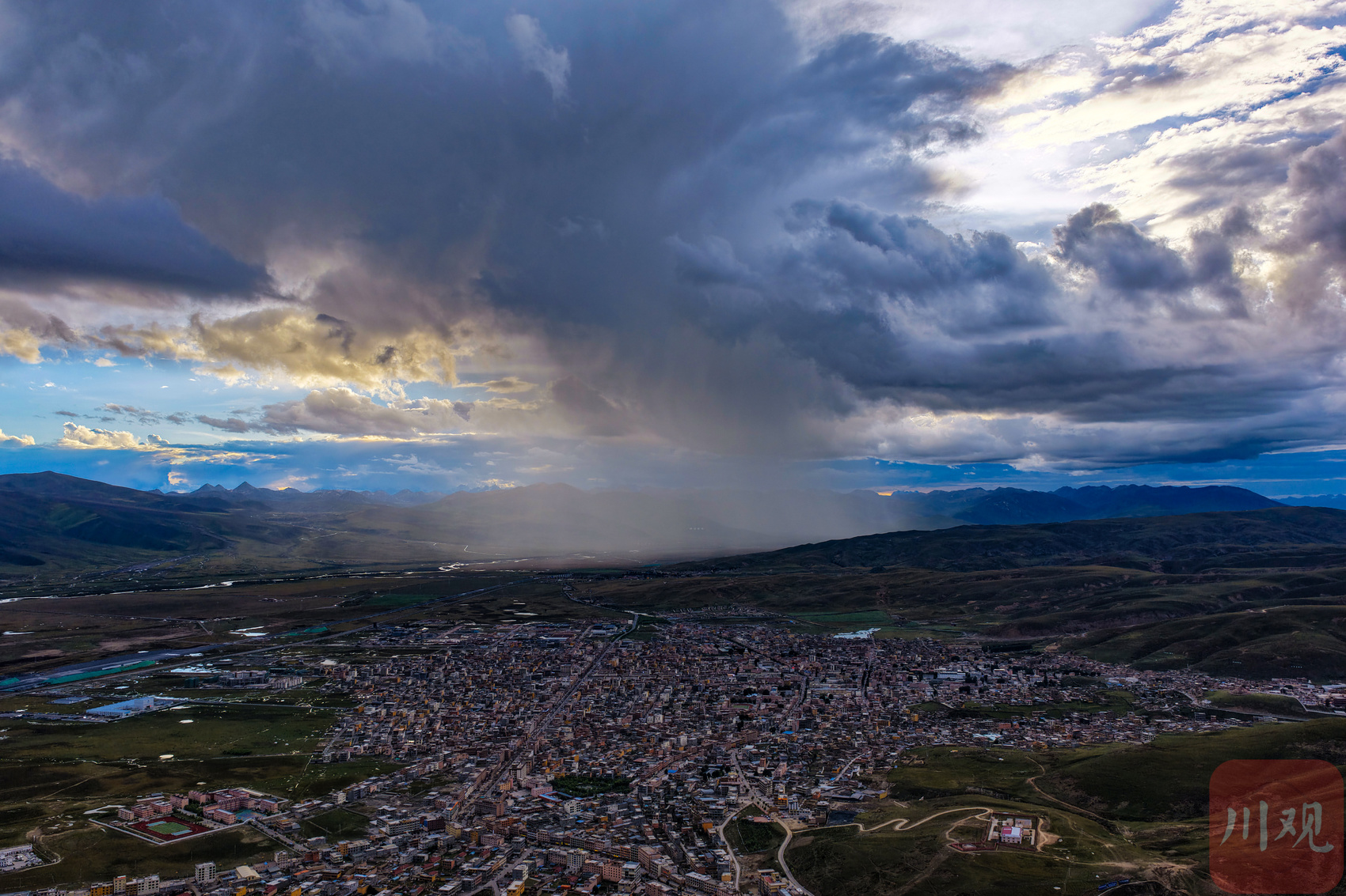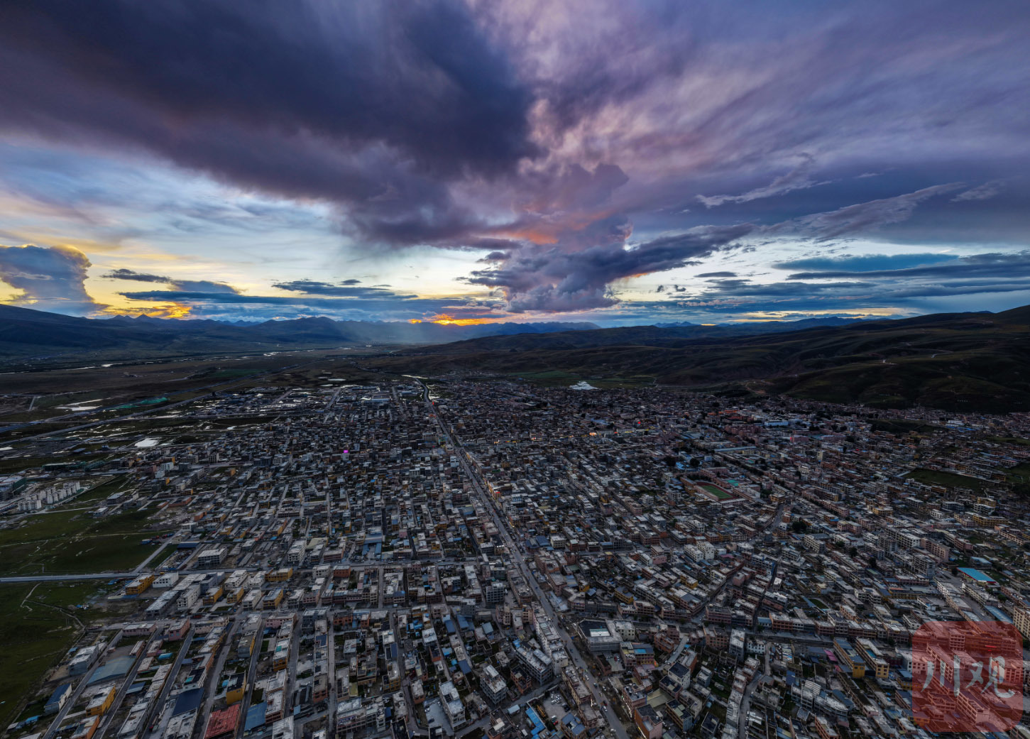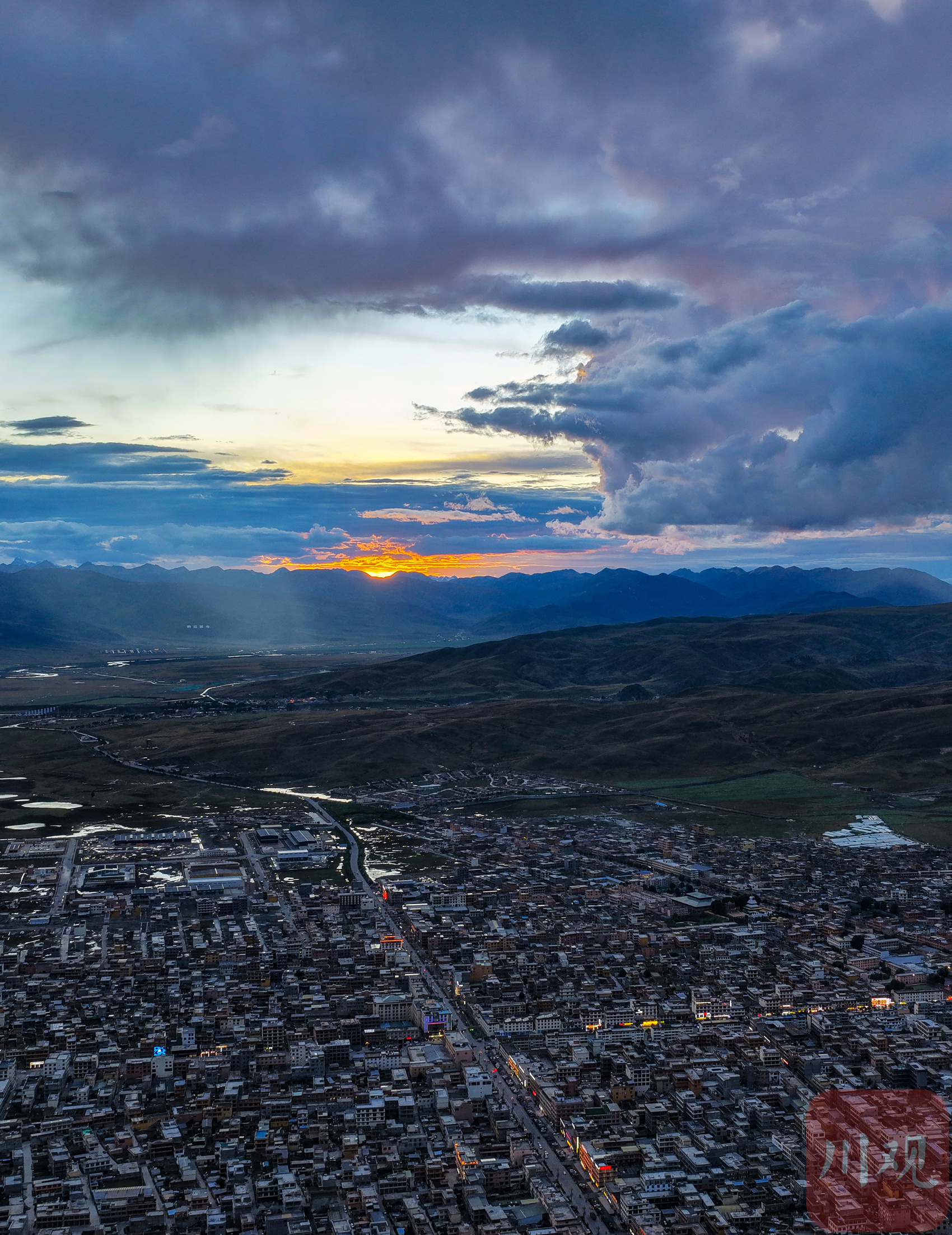 9月3日傍晚,俯瞰四川省甘孜藏族自治州理塘县城。