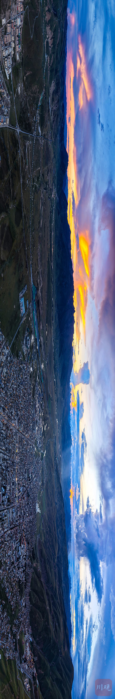 9月3日傍晚,俯瞰四川省甘孜藏族自治州理塘县全景。