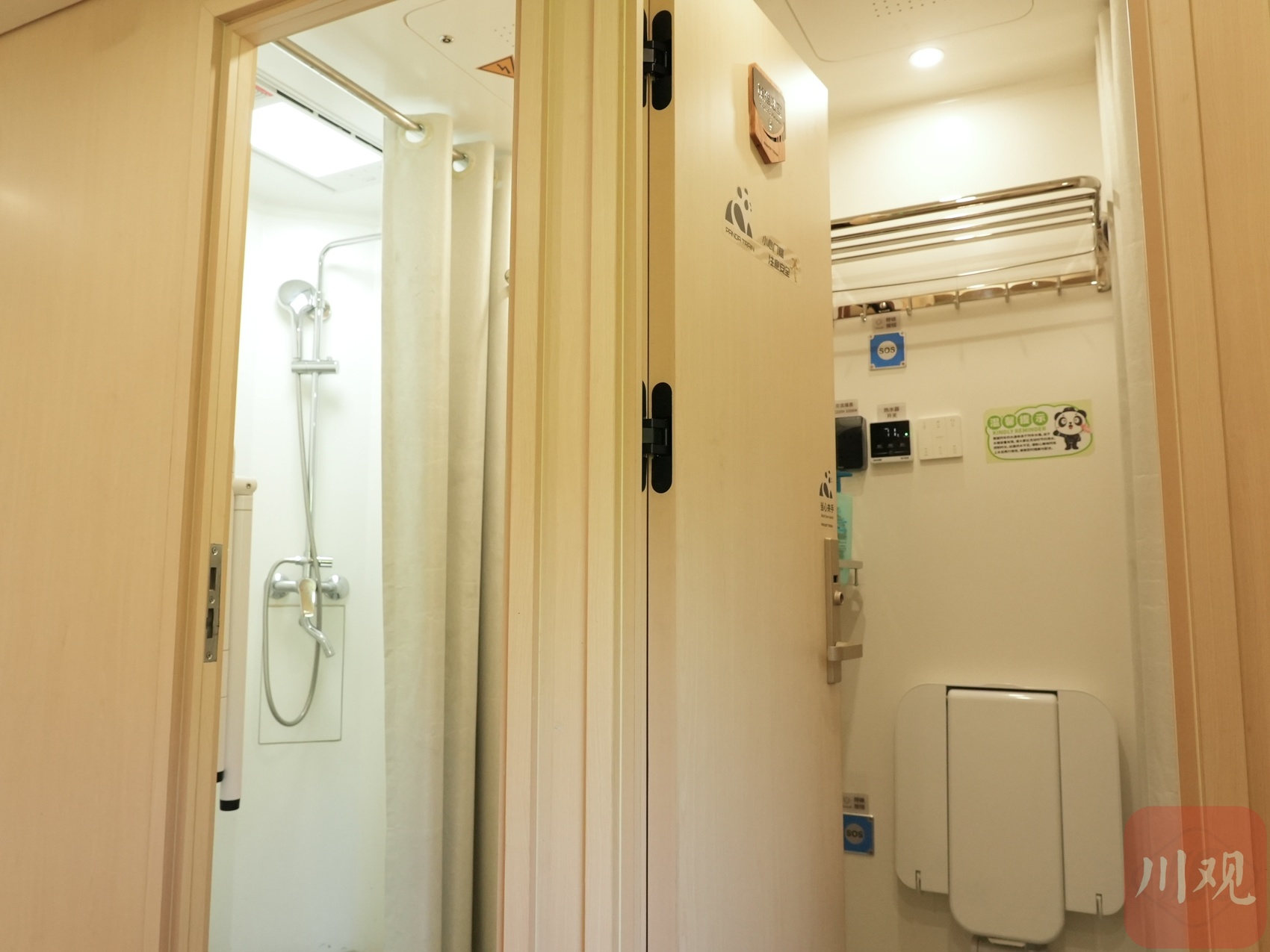“‘熊猫专列·安逸号’,定位于舒适型旅游列车。”西南铁路国际旅行社工作人员张瀚予介绍,今年全新改造的熊猫雅居四人间是主力房型之一,改造后的包房更加宽敞,两排上下铺分列左右,每个铺位床头都有插座和小夜灯,细节满满。中间的空间很宽敞,布置了一张桌子和四张椅子,桌上还有为乘客准备的小零食和洗漱包。