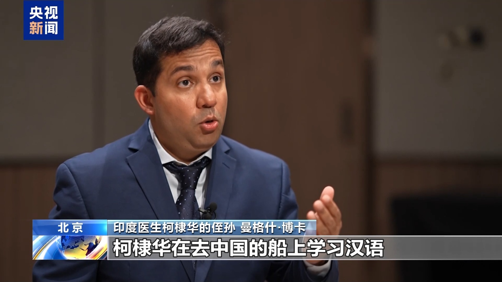 印度医生柯棣华的侄孙 曼格什·博卡:让我着迷的故事是柯棣华在去中国的船上学习汉语。他用中文写了一本关于外科手术的书,这样就可以让年轻的中国医生学习如何进行战地手术。他在河北省挽救了800多人的生命,曾经连续工作72小时。