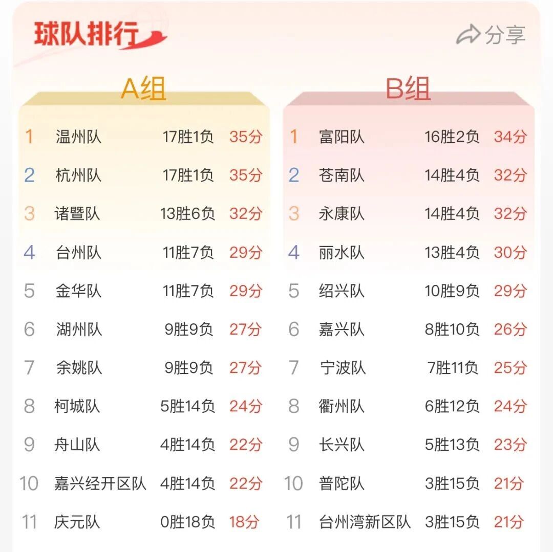 浙BA城市争霸赛近期赛事安排(具体比赛以实际为准)