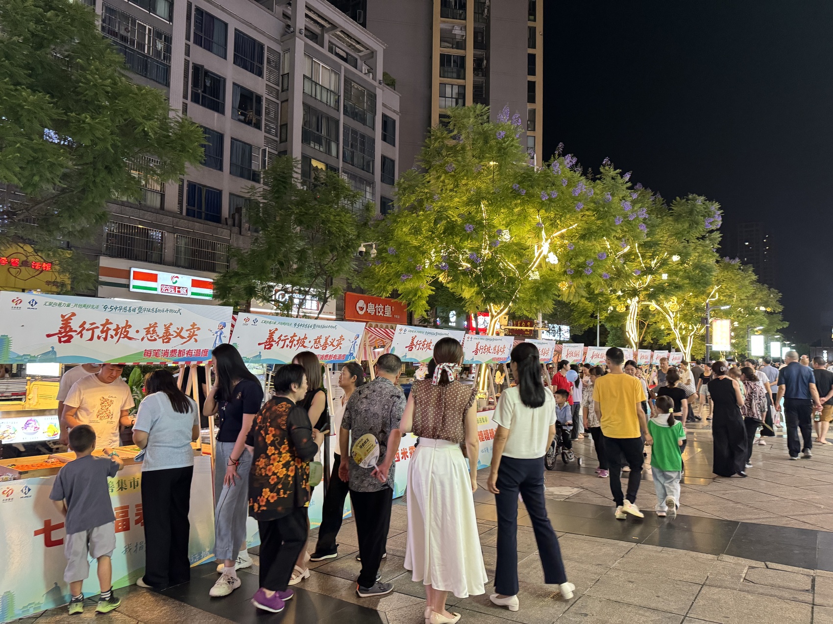 灯光下的“慈善街”依旧热闹,市民们的身影在摊位间穿梭,善意正沿着这条260米长的街道,蔓延开来。