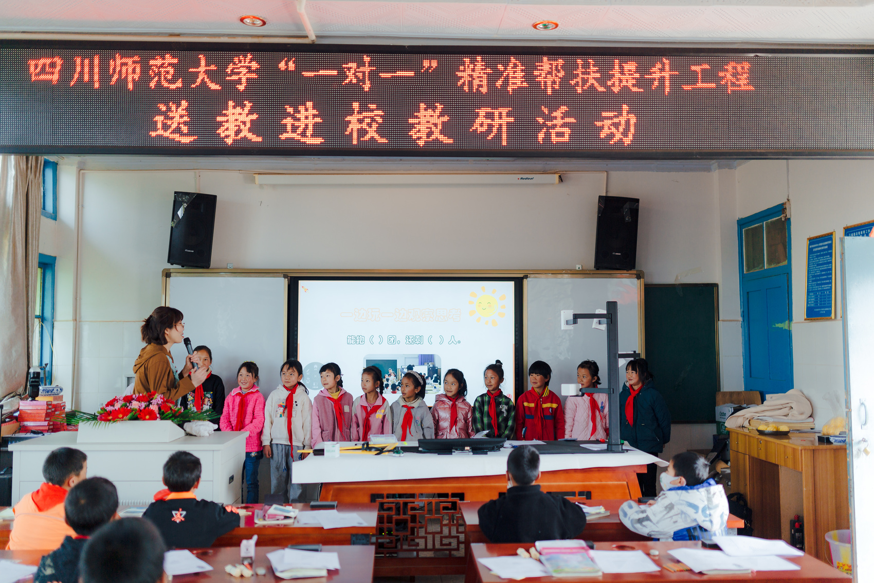 在盐源县卫城镇小学,四川师范大学的老师送教入校。