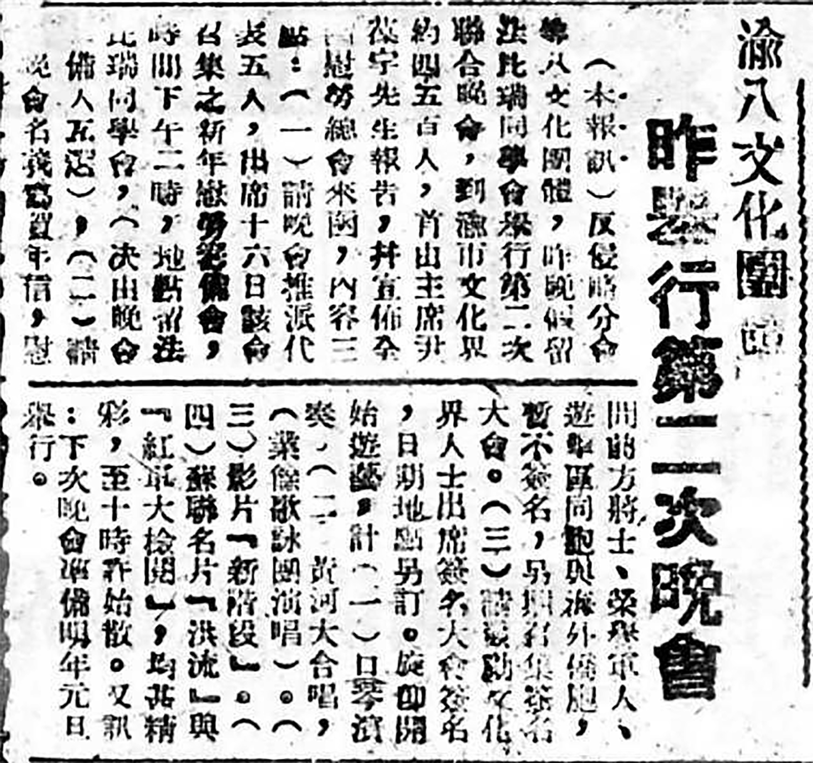 皖南事变后,面对国民党当局对进步文化人士的压制,南方局巧妙地开展文化活动,汇聚抗日救亡力量。“当时,郭沫若本不愿大肆庆祝五十岁生日,但周恩来等中共领导认为,郭沫若等人的寿辰、纪念日正是开展文化活动的好时候。”蔡雯雯介绍。《南方局关于文化运动工作报告》中提到,“过去文化活动的方式已不能用,被迫产生新的方式,借文化人的红白日,郭沫若之五十寿辰,冯玉祥之六十寿辰,张冲之追悼会等等,以此方式进行一些文化活动。”