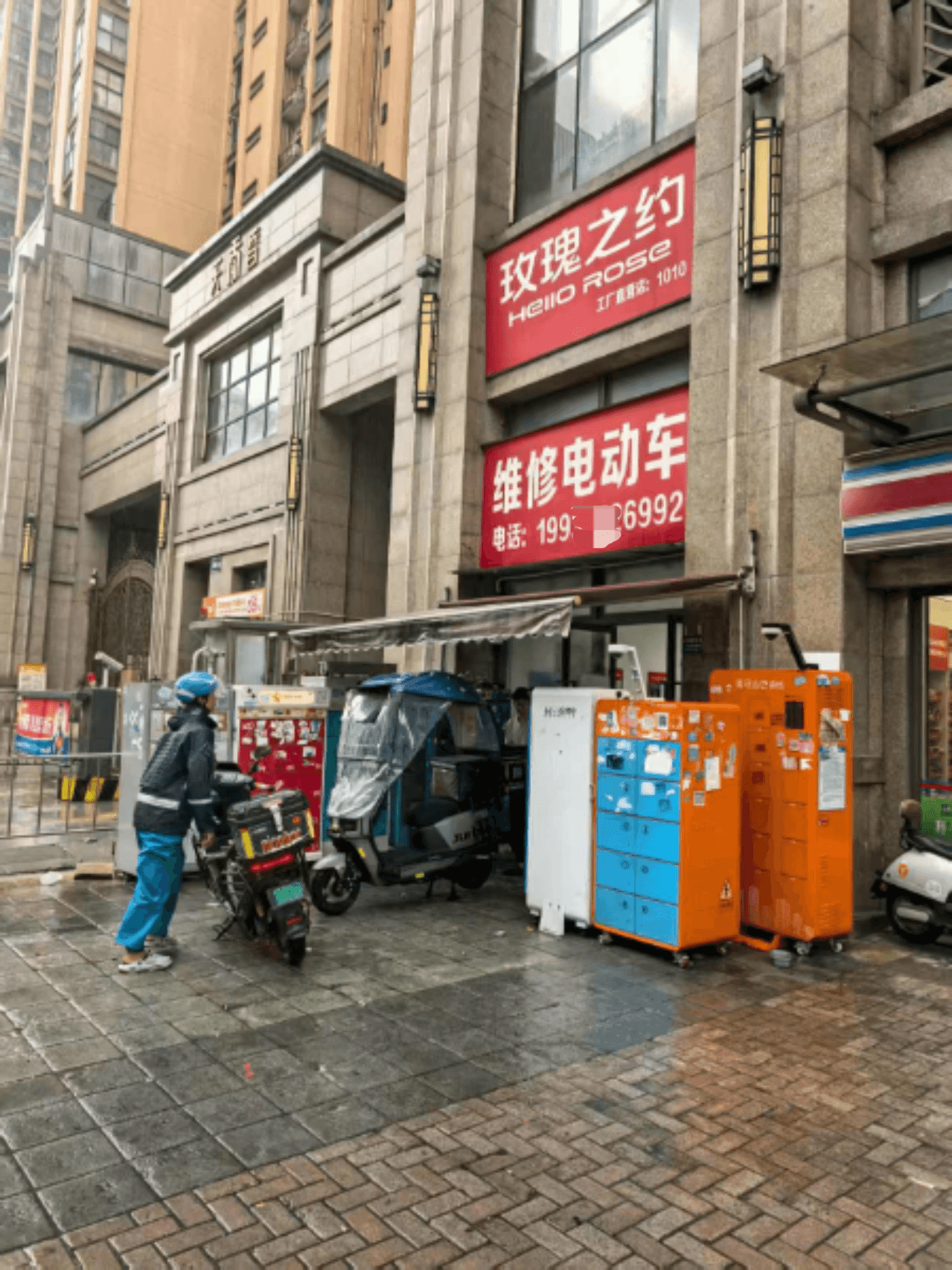 涉事共享充电柜位于小区1号门左侧一家标识为“玫瑰之约工厂直营店1010号”(简称:“玫瑰之约”)的店铺门口。据工作人员肖先生介绍,当时是一个充电柜中的电池发生故障。