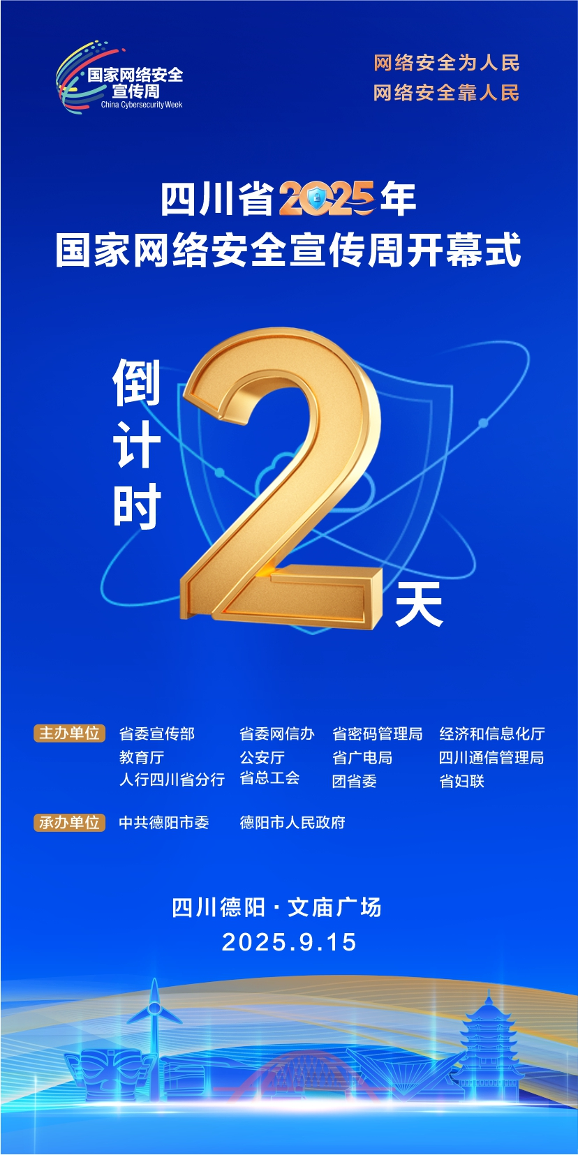 为推动网络安全意识全民普及,深化网络安全法律法规宣传贯彻,四川省2025年国家网络安全宣传周将于9月15日在德阳启动。