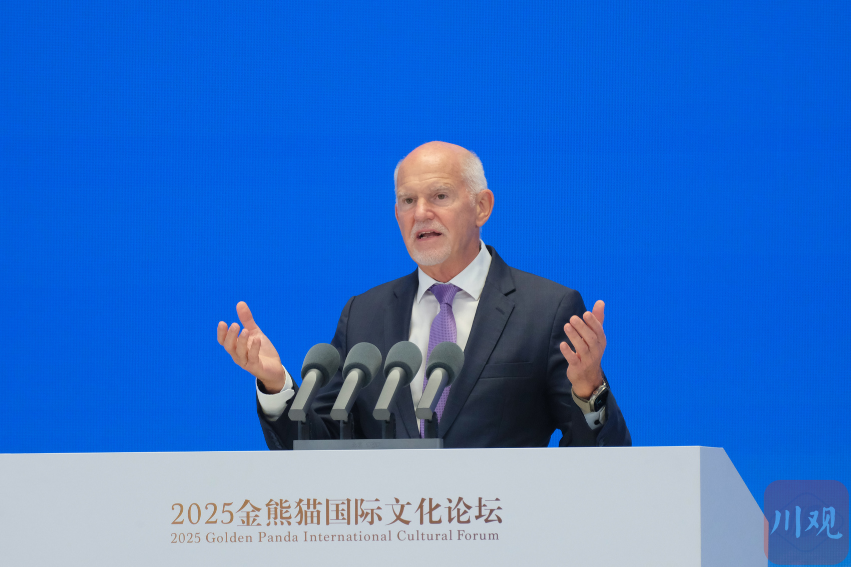 希腊前总理乔治·帕潘德里欧出席2025金熊猫国际文化论坛。郝飞 摄