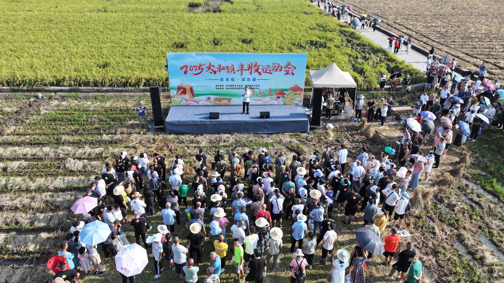 上午9时,“庆丰收·促发展”太和镇丰收运动会在永丰村高标准稻田旁激情开赛。来自全镇各村(社区)的160余名选手踊跃参与,在收割稻谷、徒手剥玉米、稻田摸鱼、拔河等充满农耕趣味和乡土情怀的比赛中展开激烈角逐。